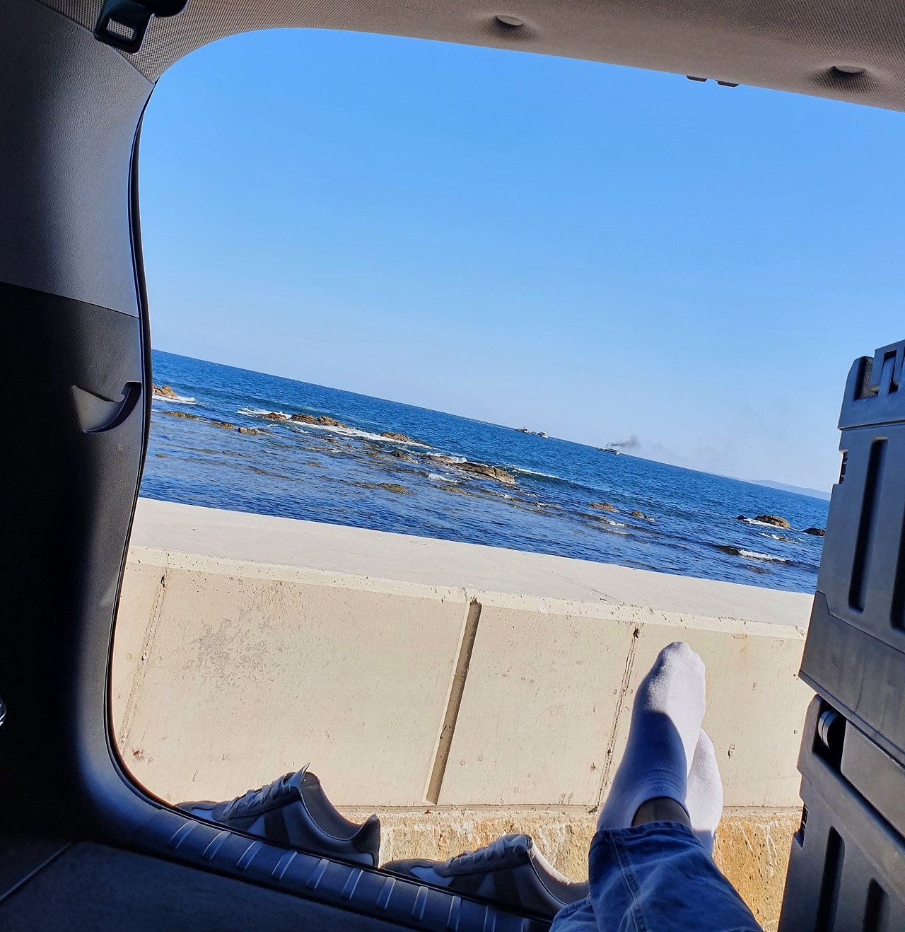 사실은 모든 게 지칠 대로 지쳐서 그냥 '혼자'만의 시간이 필요했거든요. 그래서 더더욱 차를 끌고 날씨가 좋든 말든(그래도 날씨가 맑은 날을 더 선호하긴 하였지만) 오도리 해수욕장에 들러 캠핑의자를 펴놓고 바로 뒤에 있는 카페를 들러 아메리카노 하나 시켜서, 블루투스 스피커와 함께 그냥 시간을 보낸 거 같아요.