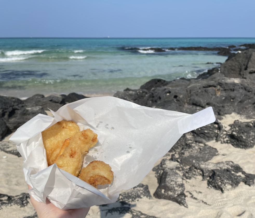 먹어보고 싶었던 제주에서의 피시 앤 칩스를 바다 보며 먹는 이 낭만.