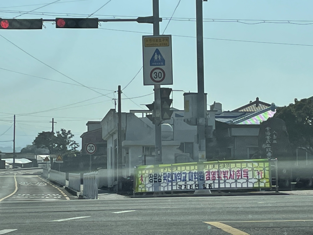 여유롭게 먹으며 바다를 감상하고 싶었지만 배고픈 나머지 바위에 앉자마자 허겁지겁 10분 안에 다 먹은 것 같다. 그만큼 맛있어서 다음에 또 오면 먹어야지. 비행기 출발시간에 맞추느라 얼른 차 타고 신호를 기다리는 와중에 현수막이 보였다. 이 작은 곳에 누구의 자녀분인지 모르지만 경영학 박사를 취득하셔서 자랑스럽고 좋아하는 마음이 전해졌다. 얼마나 좋으실까. 축하합니다!