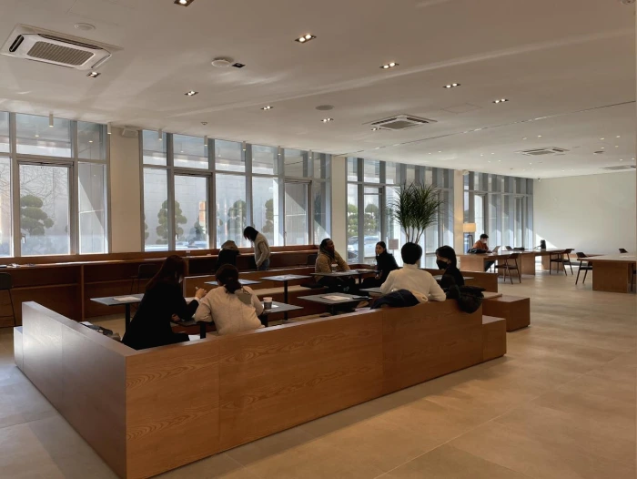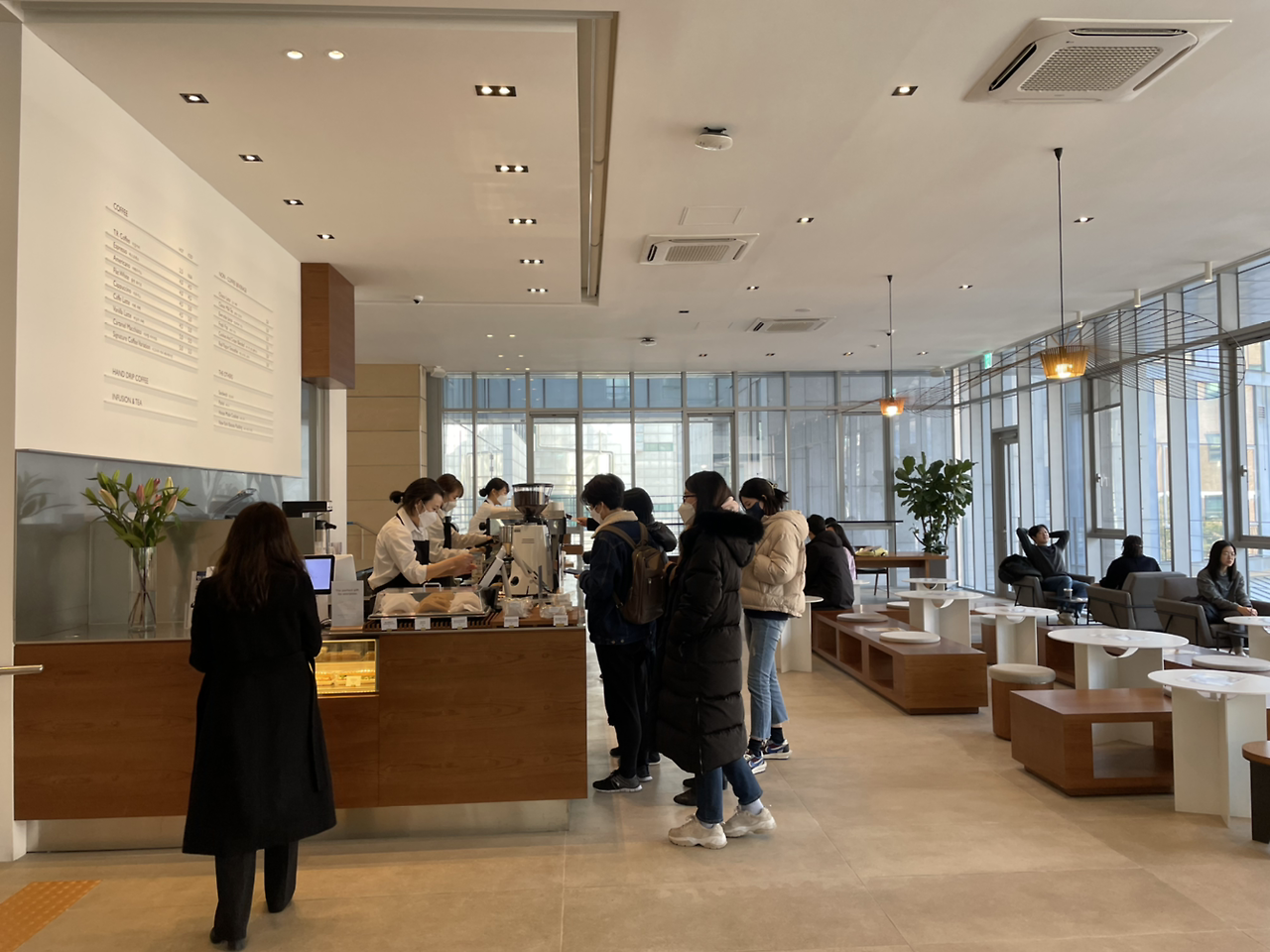 블루보틀 느낌이 나는 인테리어에 층고도 높고 전면에 창문으로 되어있어 채광도 잘 들어오고 뷰도 좋다. 양쪽으로 공간이 넓게 되어 있어서 조용히 노트북 갖고 와서 공부하기에도 적합한 것 같다. 청담이나 성수에 있을법한 고급미 철철 나는 카페가 학교에 있다니 감격스럽다. 풍문으로는 이쪽 경영대에 최고위 과정이 있어 대단하신 분들도 오실 수 있게 카페를 잘해놨다는 소문? 이 있다. (카페 '더랩'에서 세컨드로 운영한다고 한다)