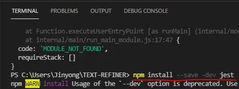 터미널에서 명령어를 통해 jest를 설치해줍니다.