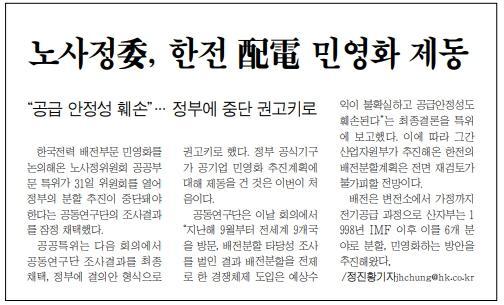 소위 말하는 보수 언론과 경제지들은 이를 반대하는 논조를 표현했어야 했다. 자기들이 떠받드는 자유시장경제와 민영화의 신앙을 깼으니까. 하지만 그들이 극도로 싫어하던 진보 정부의 정책이 중단됐기 때문에 그들로서는 좋다는 말도 싫다는 말도 하지 못하고 어정쩡했다. 비겁했다. 반면 대다수 진보 매체는 민영화 중단을 일단 환영했다. 어느 쪽이 조금이라도 더 솔직한 가는 이 보도를 통해서도 볼 수 있었다.