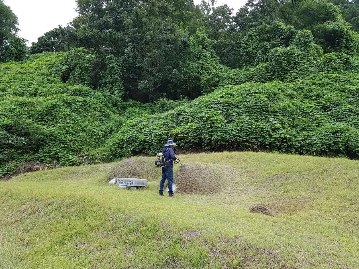 흙을 쓸어내던 인부들이 허리 펴고 일어나자
