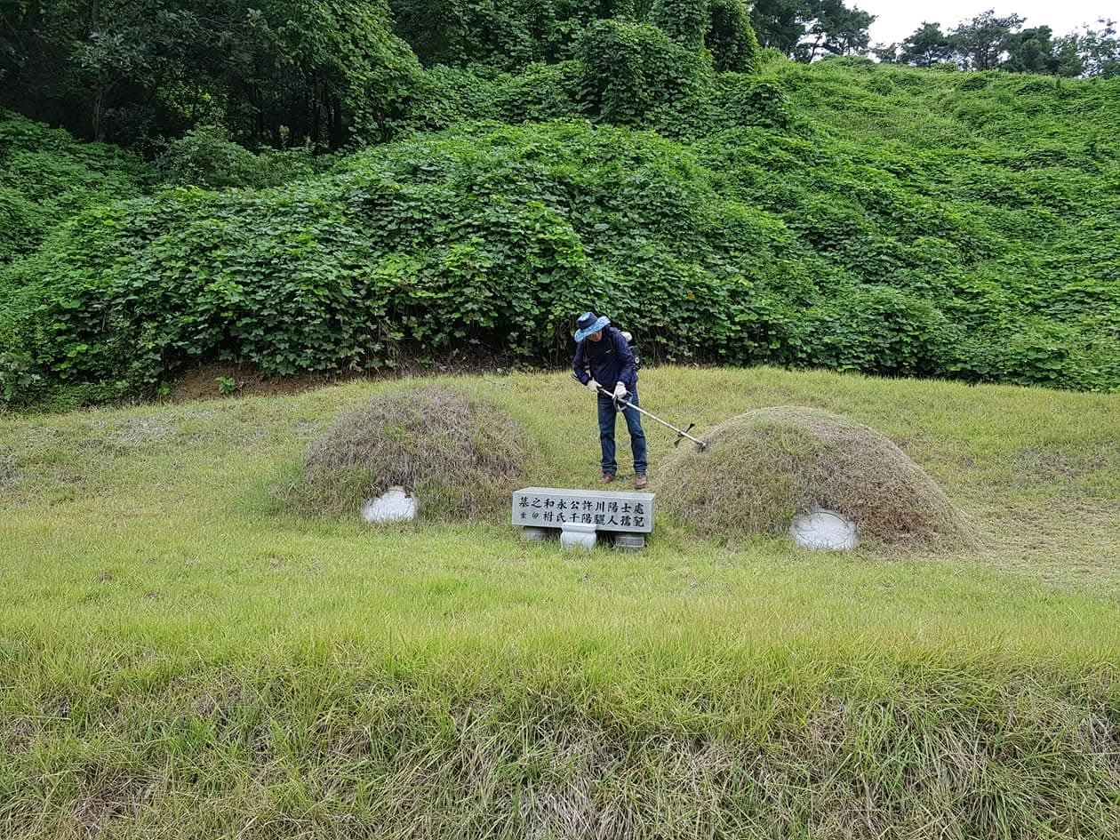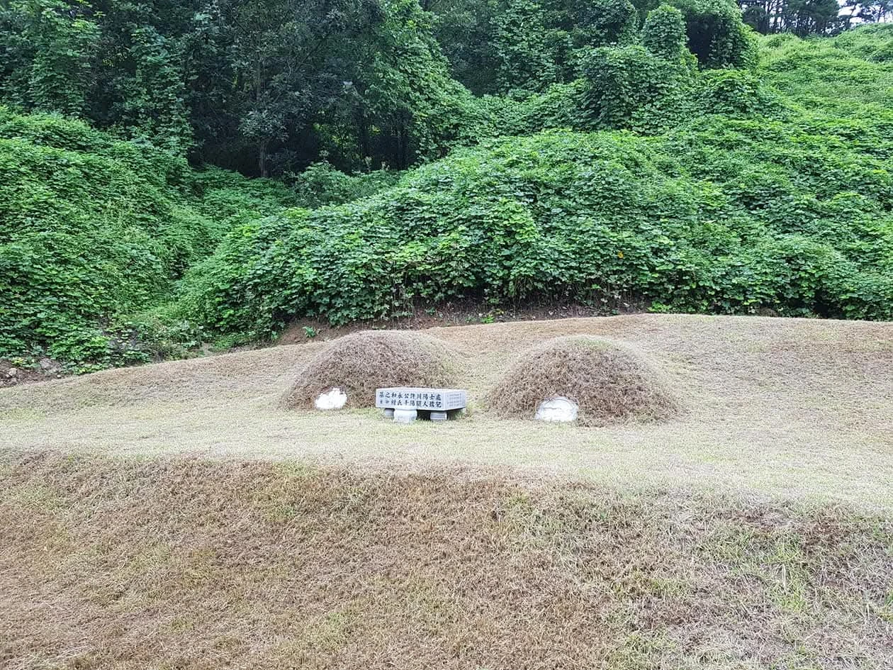 상석에 놓인 저승길 노자 지폐 몇 장으로