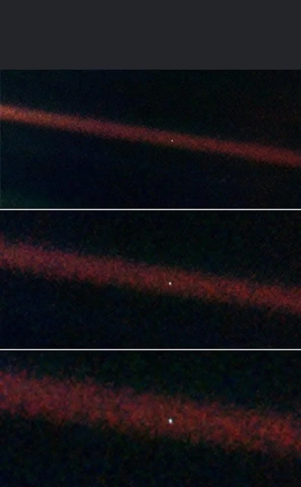 “다시 저 점을 보라. 저것이 우리의 고향이다. 저것이 우리다. 당신이 사랑하는 모든 사람들, 당신이 아는 모든 이들, 예전에 삶을 영위했던 모든 인류들이 바로 저기에서 살았다.” “지구는 우주에 떠 있는 보잘 것 없는 존재에 불과함을 사람들에게 가르쳐주고 싶었다.”는 명언을 남겼다. - 칼 세이건이 쓴 책 <창백한 푸른 점> 중에서 -