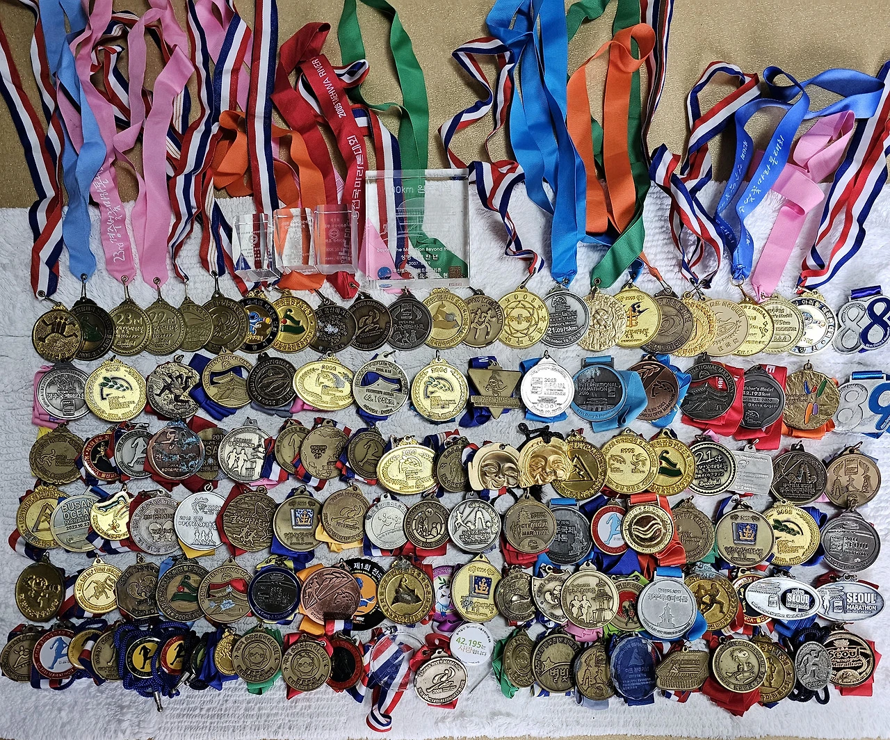 아베베, ‘맨발의 마라토너’로 알려진 에디오피아 선수다. 1960년 로마올림픽과 ‘64년 도쿄올림픽 등 2개 금메달을 목에 걸었다. 뒤늦게 대표팀에 합류로 신발을 지급받지 못했다는데, 주로가 콘트리트 바닥이었다니 대단한 일이다. 내 개인적으로 2000년도 마라톤을 시작하였으니 26년차이다. 동호회원들 완주기를 모아 <멋진 인생! 달리며 살자! 뛰어서 가자!> 책도 출판 하였다. 내세울 기록은 45~62세 까지 17년 동안 한해도 빠짐없이 광화문~잠실운동장 코스인 서울동아마라톤을 개근으로 참가하였고 완주한 것이다. 오늘 그 동안 완주메달을 정리하였다. 분리수거로 메달은 정리하지만 전국에서 개최되는 마라톤대회는 계속 꾸준히 참가할 계획이다. 관 속에 누울 때까지 멈추지 말고 달려보자![허튼생각799]