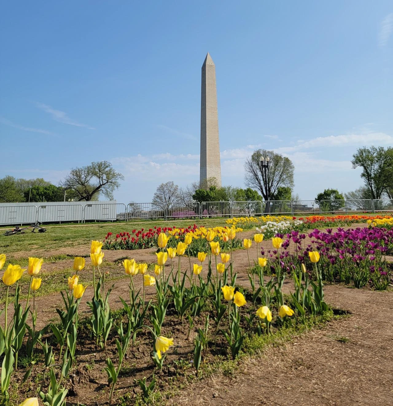 워싱턴 D.C. 는 벚꽃놀이 장소로도 아주 유명하다. 내셔널 몰의 타이들 베이슨(인공호수)을 따라서 벚꽃들이 끝없이 있었고 튤립과 이름 모를 꽃들이 여기저기 심겨 봄의 기운을 물씬 풍기고 있었다.