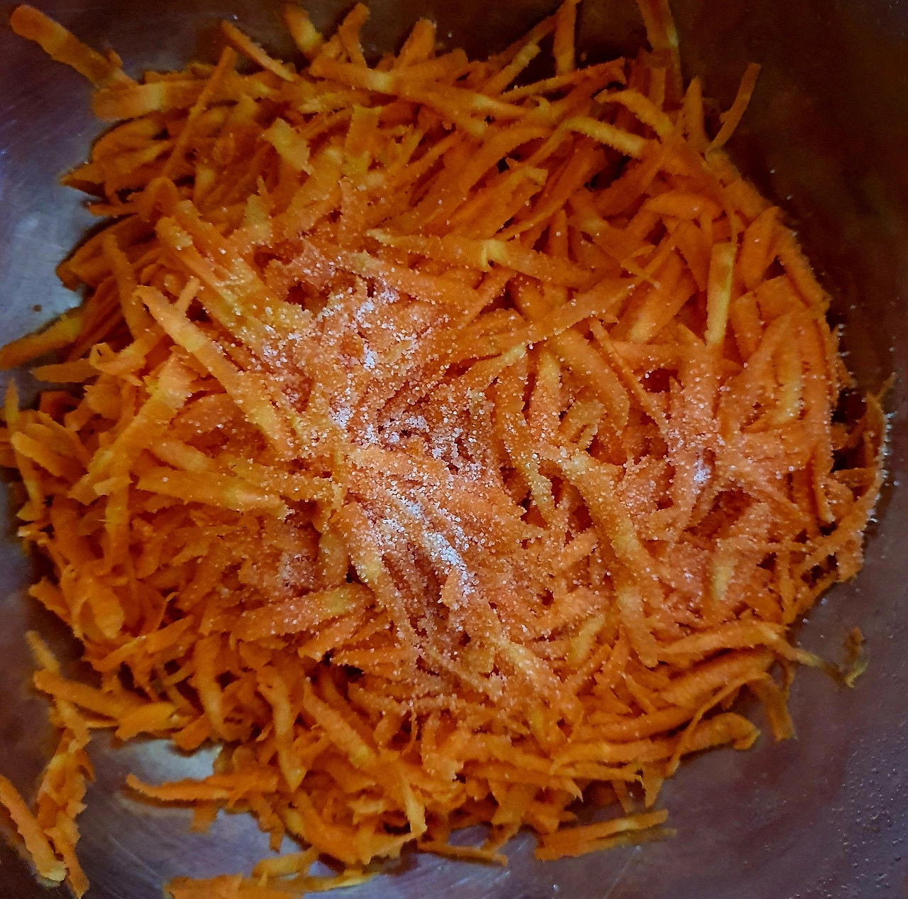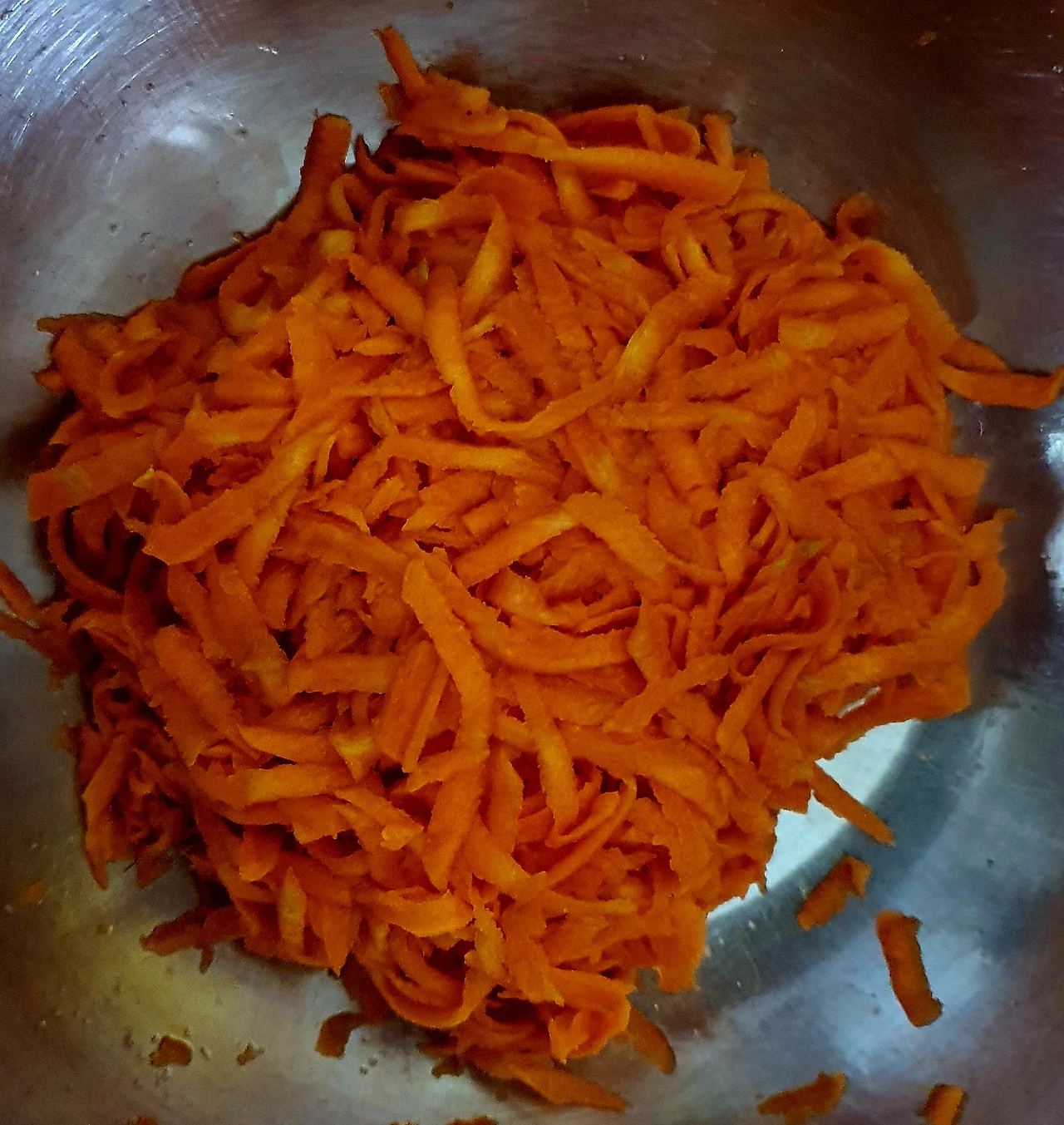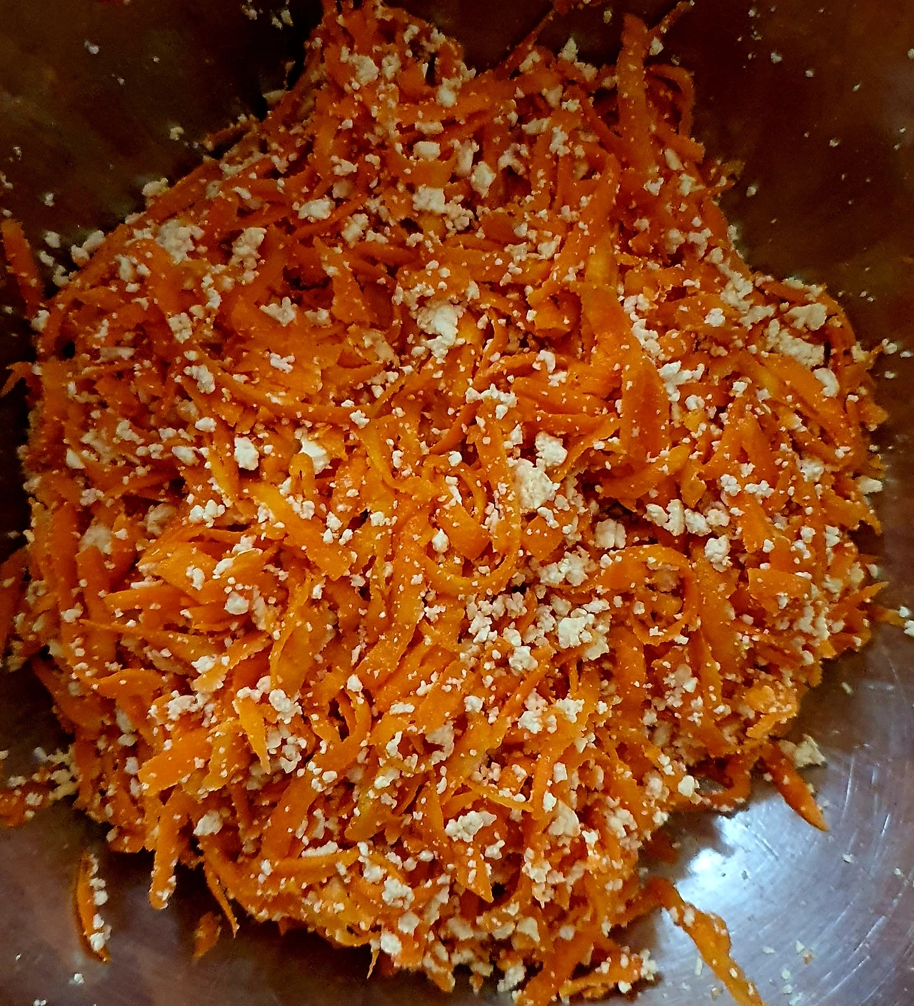 당근은 라페를 만들어 소금 조금 넣고 볶은 두부와 함께 버무려서 준비한다.