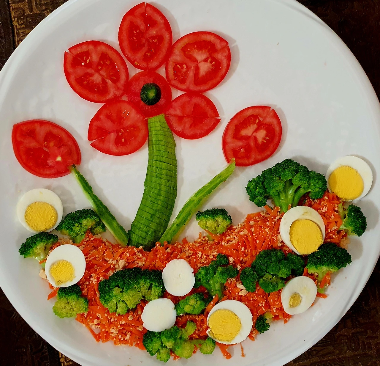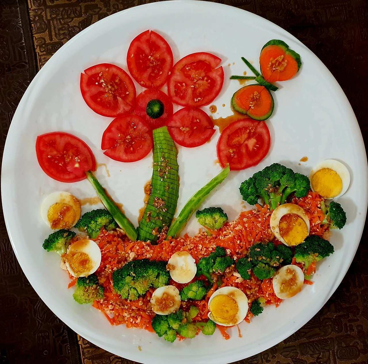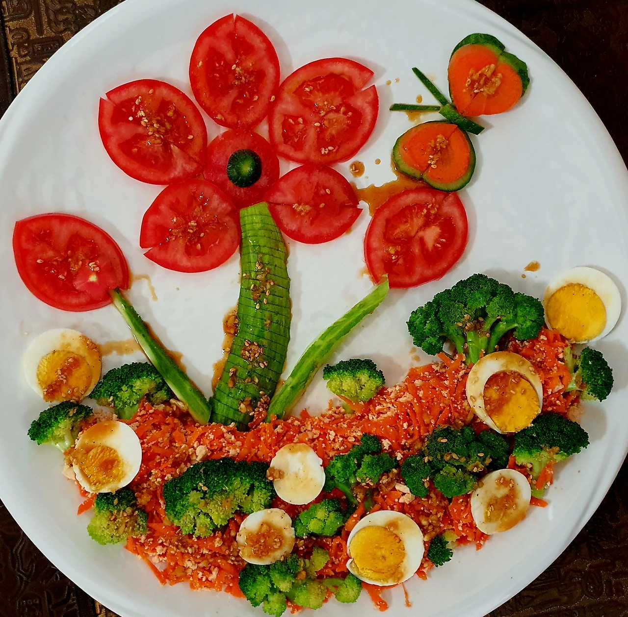 • 살짝 데친 브로콜리는 땅을 뚫고 나온 새싹을 표현해 준다. 중간중간에 삶은 달걀로 민들레꽃을 표현해 준다.
