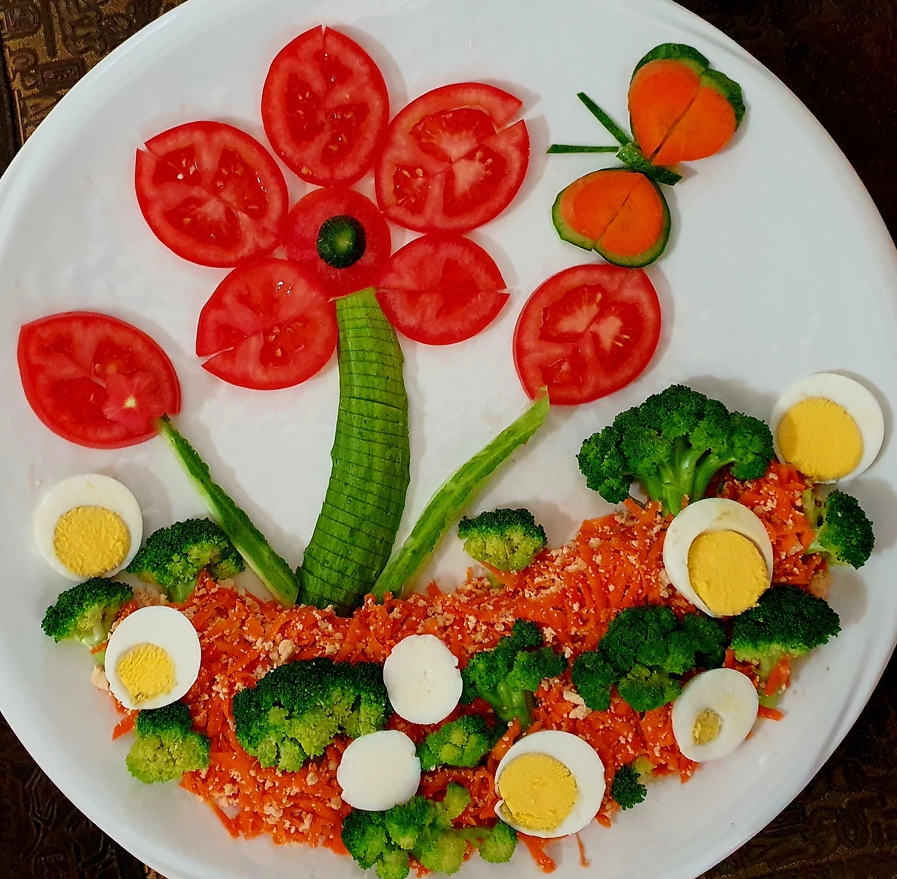• 오이와 당근으로 만든 나비 한 마리를 날리면 그림이 완성.