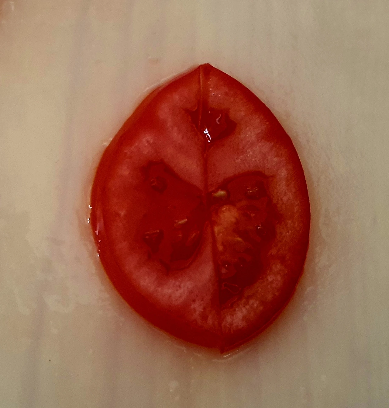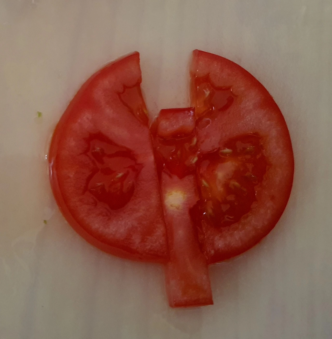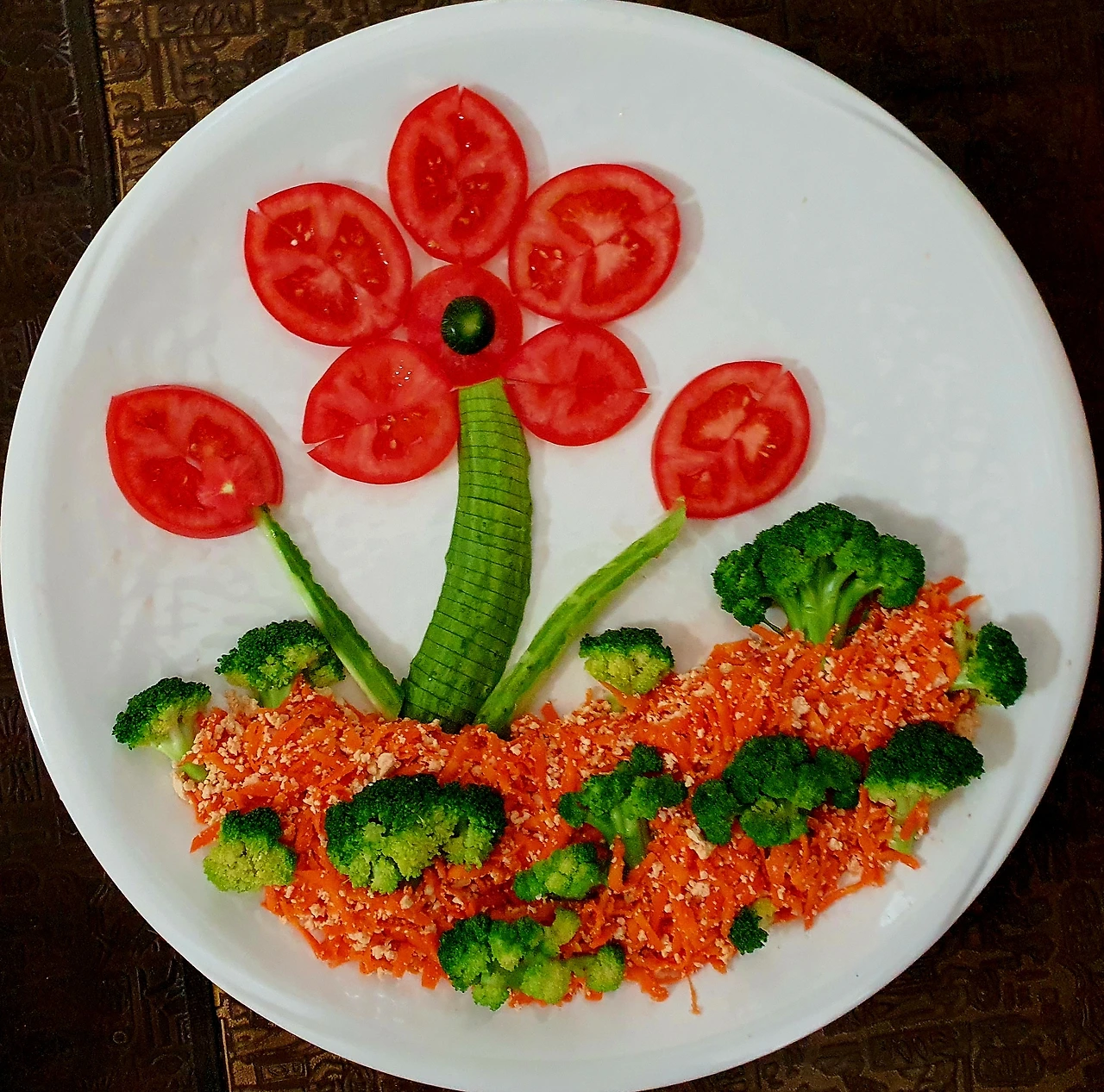 • 오이로 줄기를 표현하고 토마토로 꽃을 표현해 준다.