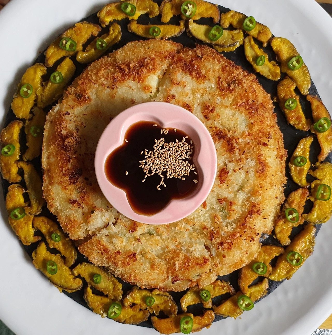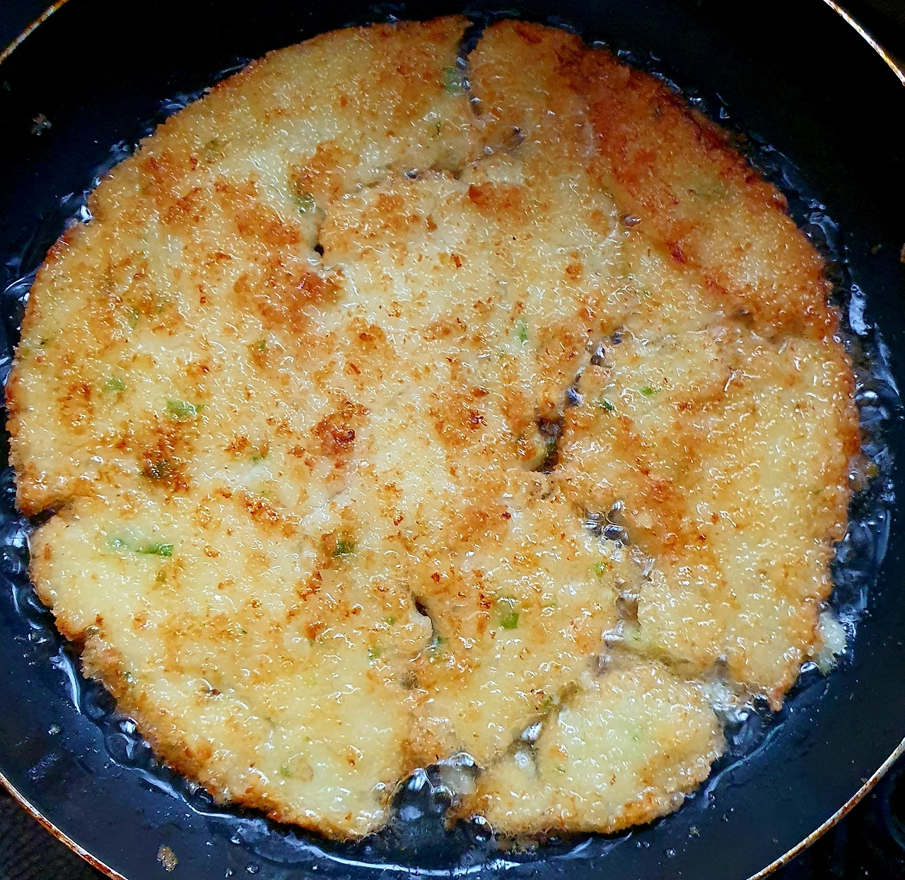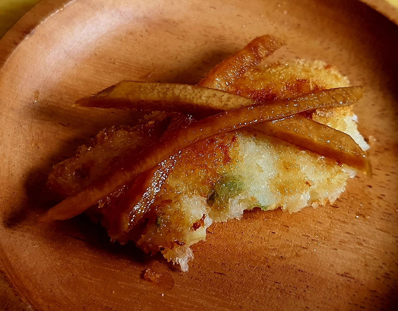 • 과자처럼 겉은 바삭한 식감에 속은 폭신한 감자전 완성. 간이 부족하면 냉장고 안에 장아찌 담근 초간장을 조금 따라 찍어먹음 더 이상 말이 필요 없다.