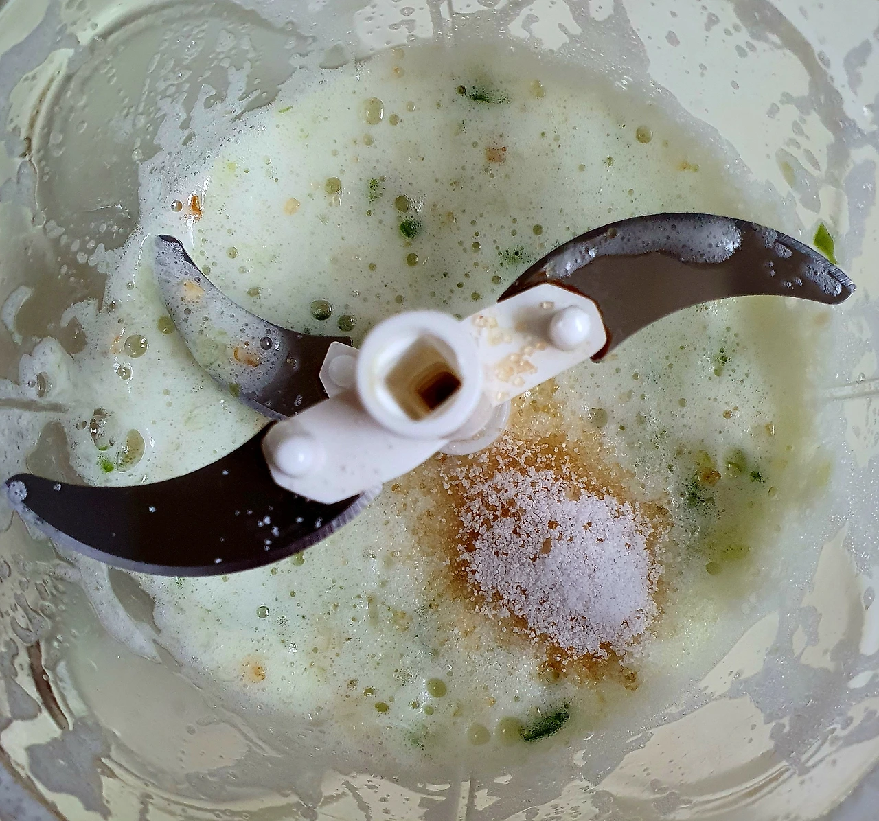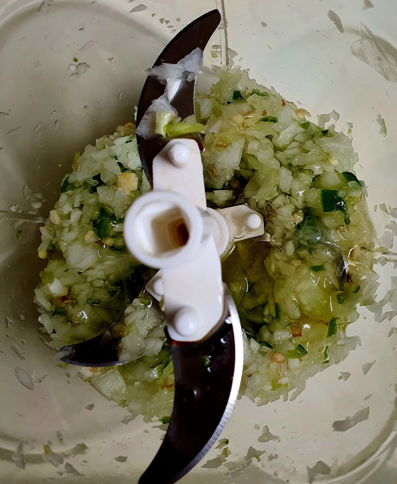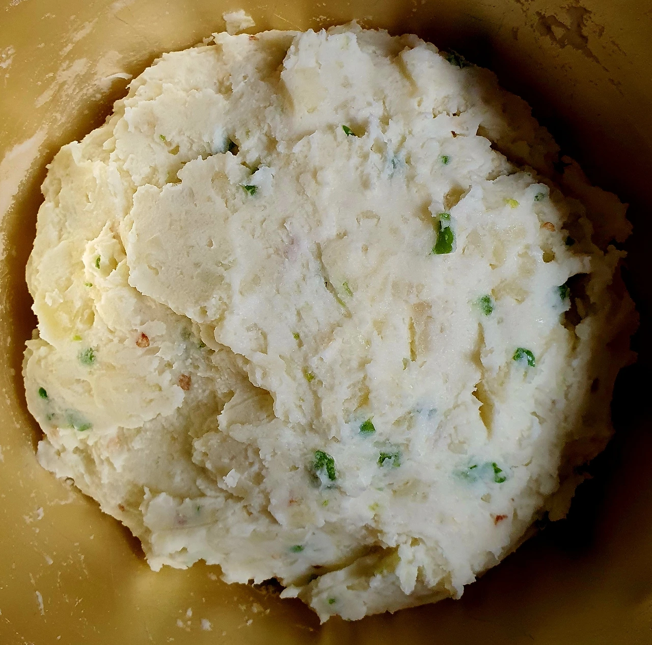 • 삶아진 감자를 으깨주고 양파와 청양고추는 카타기에 곱게 갈고, 달걀흰자위도 넣고, 소금½작은술. 설탕½작은술과 부침가루를 넣고 잘 섞어준다.