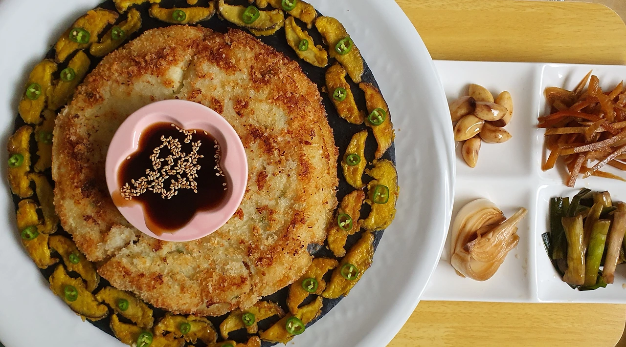 • 완성접시에 감자전을 올리고 주위에 보기 좋게 돌려 담아주면 완성
