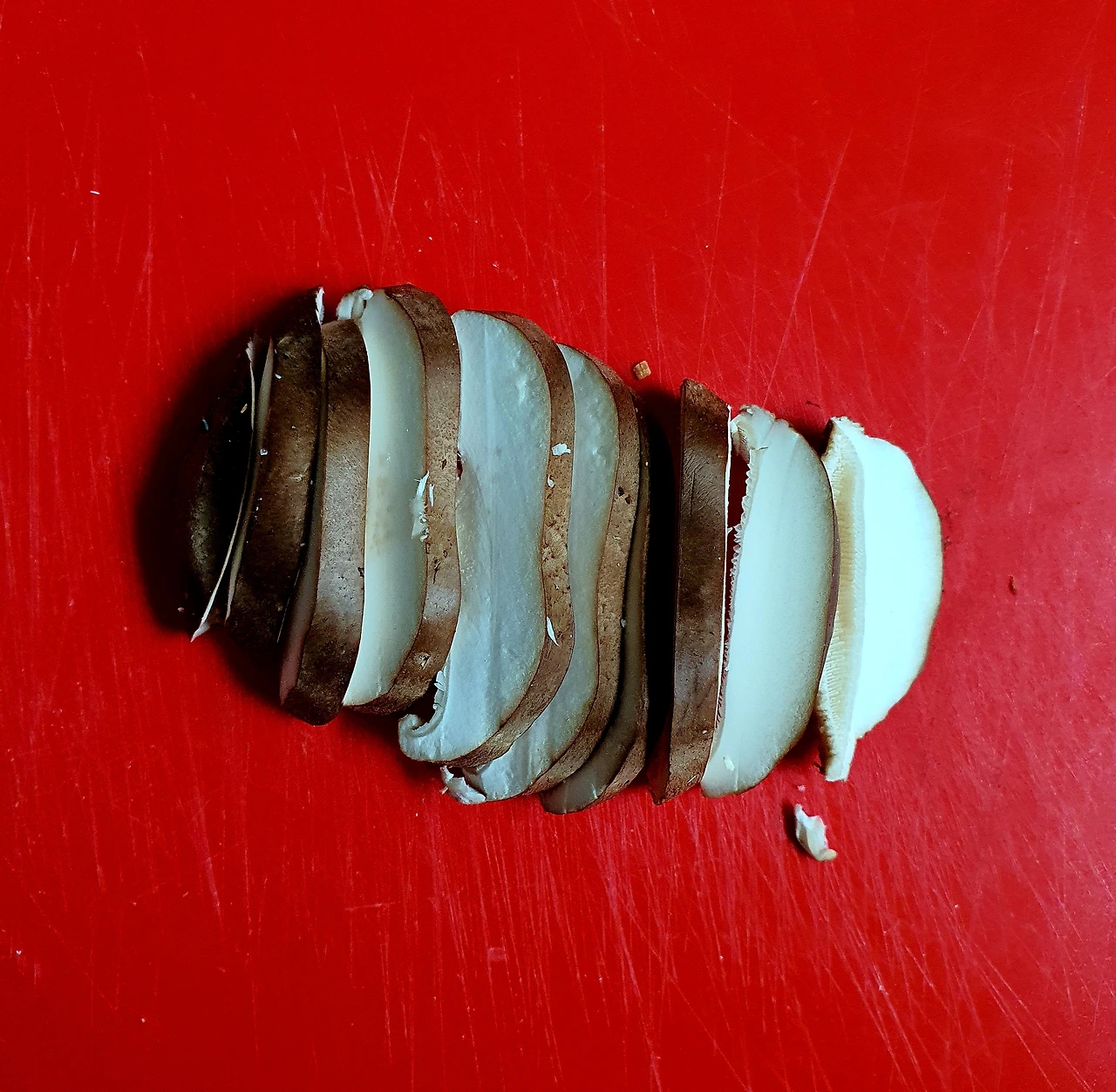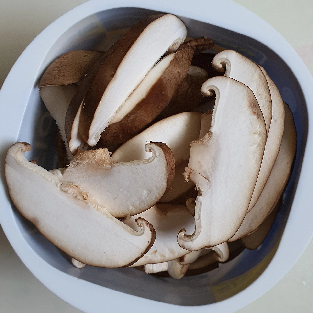 • 표고버섯은 밑동을 떼어내고 먹기 좋게 슬라이스 해준다.