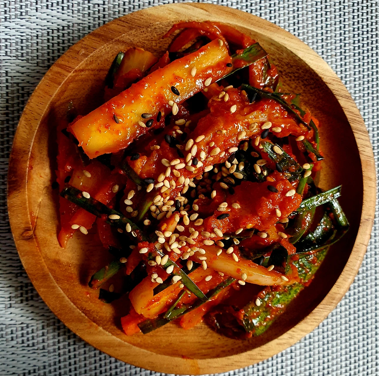 • 고춧가루, 고추장, 간장, 설탕, 멸치 액젓, 매실액, 감식초, 맛술, 다진 마늘, 생강가루, 참기름, 참깨, 후추를 넣고 잘 섞어 양념장을 만든 다음 간이 부족하면 소금이나 시판 초고추장으로 간을 한다.