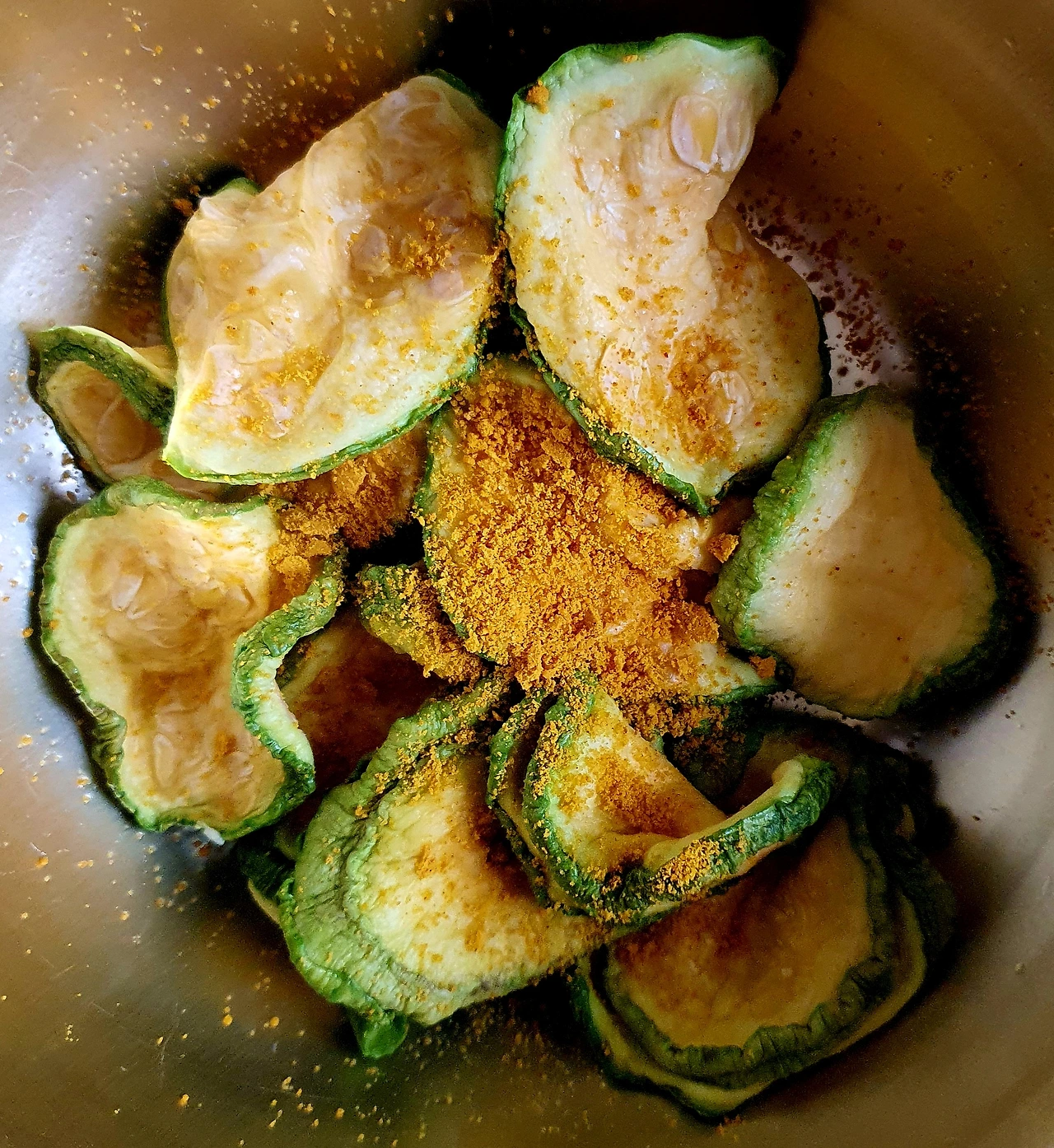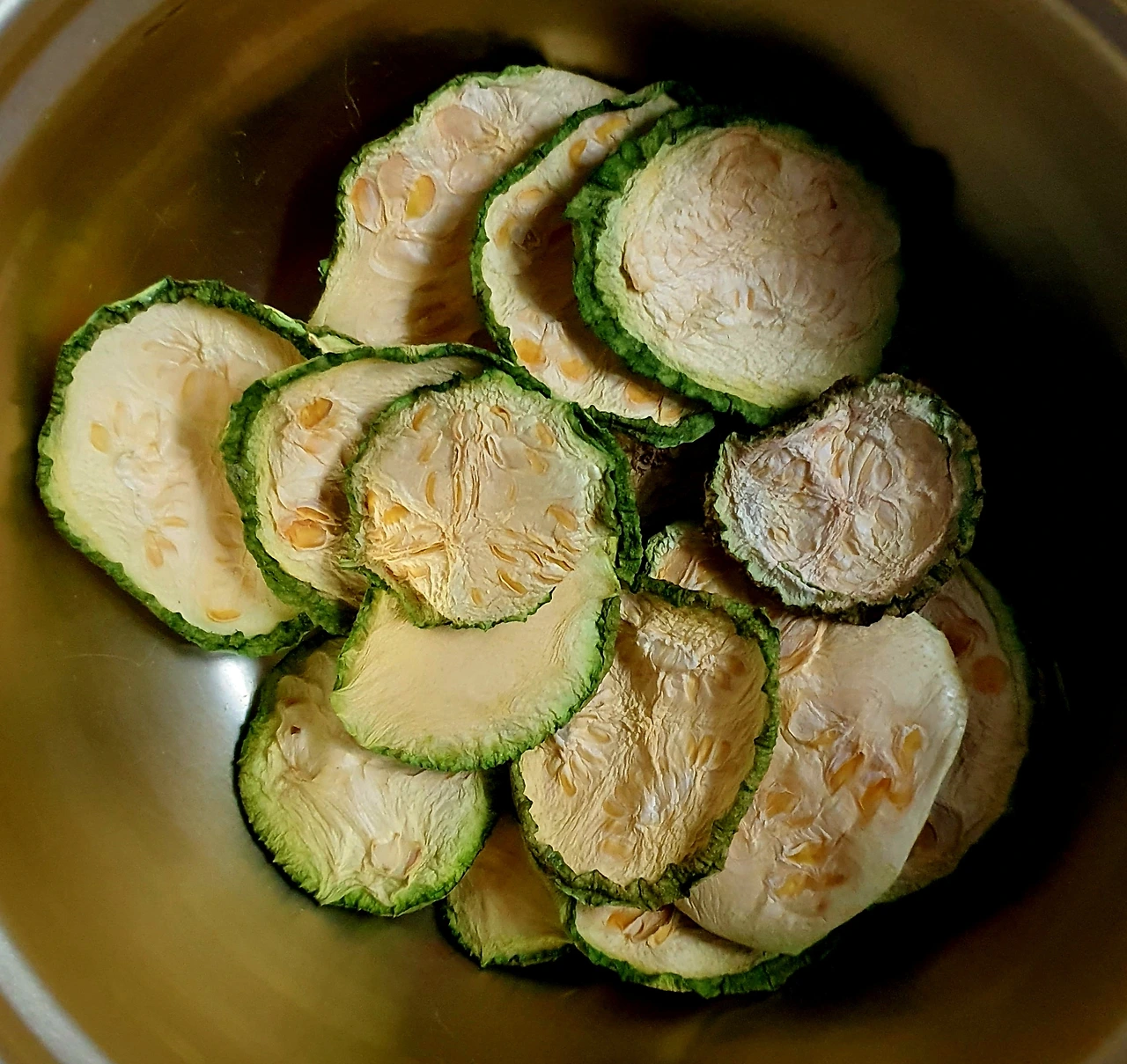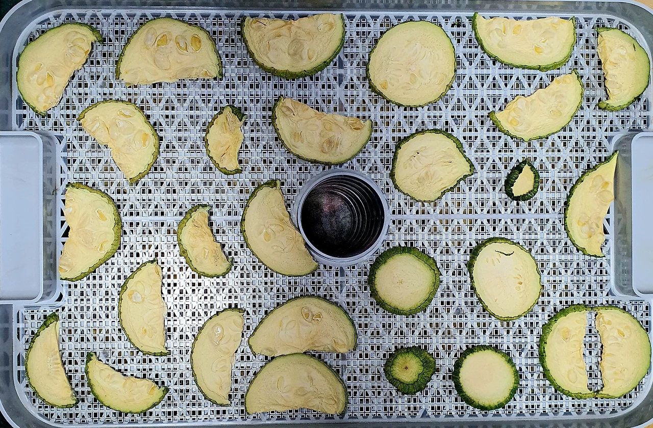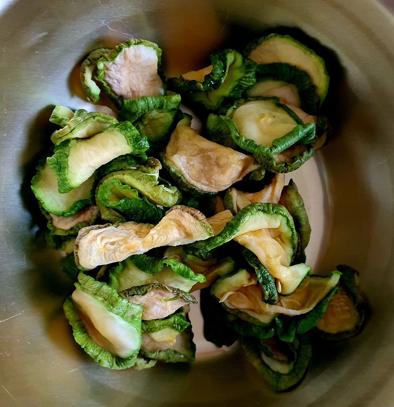 • 말리면 부피가 ⅓정도로 줄어드니 도톰하고 둥글게 또는 반달로 썰어 식품건조기에 펼쳐준다. 햇볕에 말리면 비타민D가 많아져 건강에 좋으나 요리헌터가 사는 곳이 대도시인지라 건조기로 말리기로 했음.