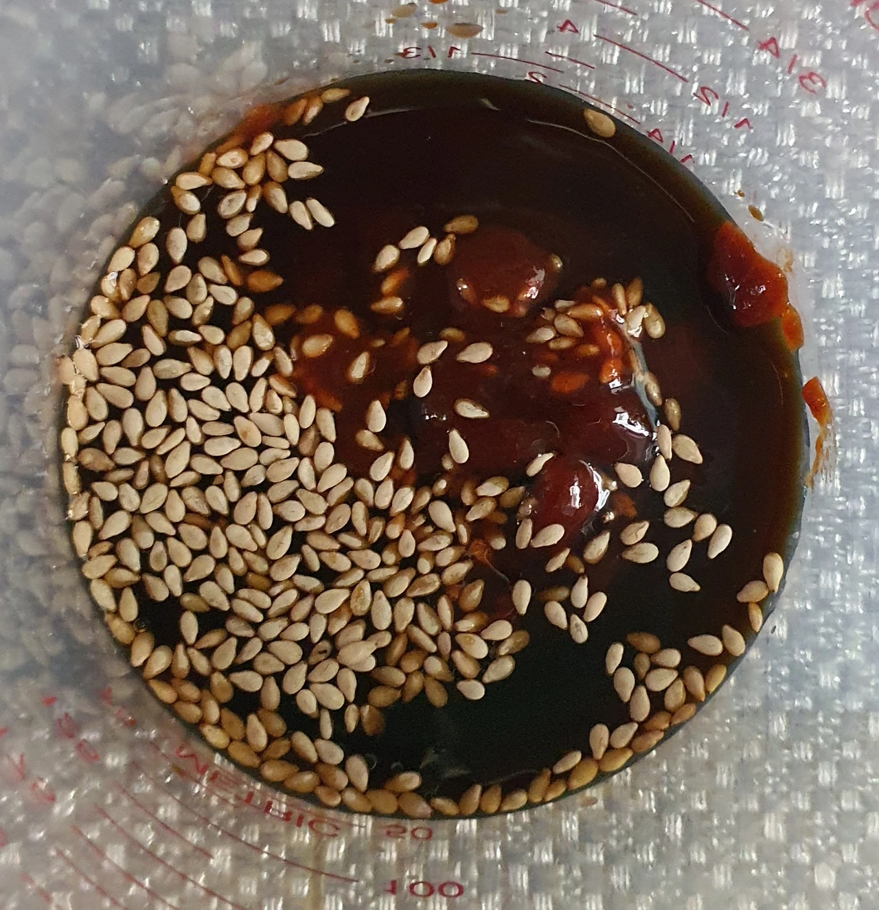 ■ 소스 : 간장 1큰술, 고추장 ½큰술, 식초 2큰술, 요리당 1큰술, 통깨 조금