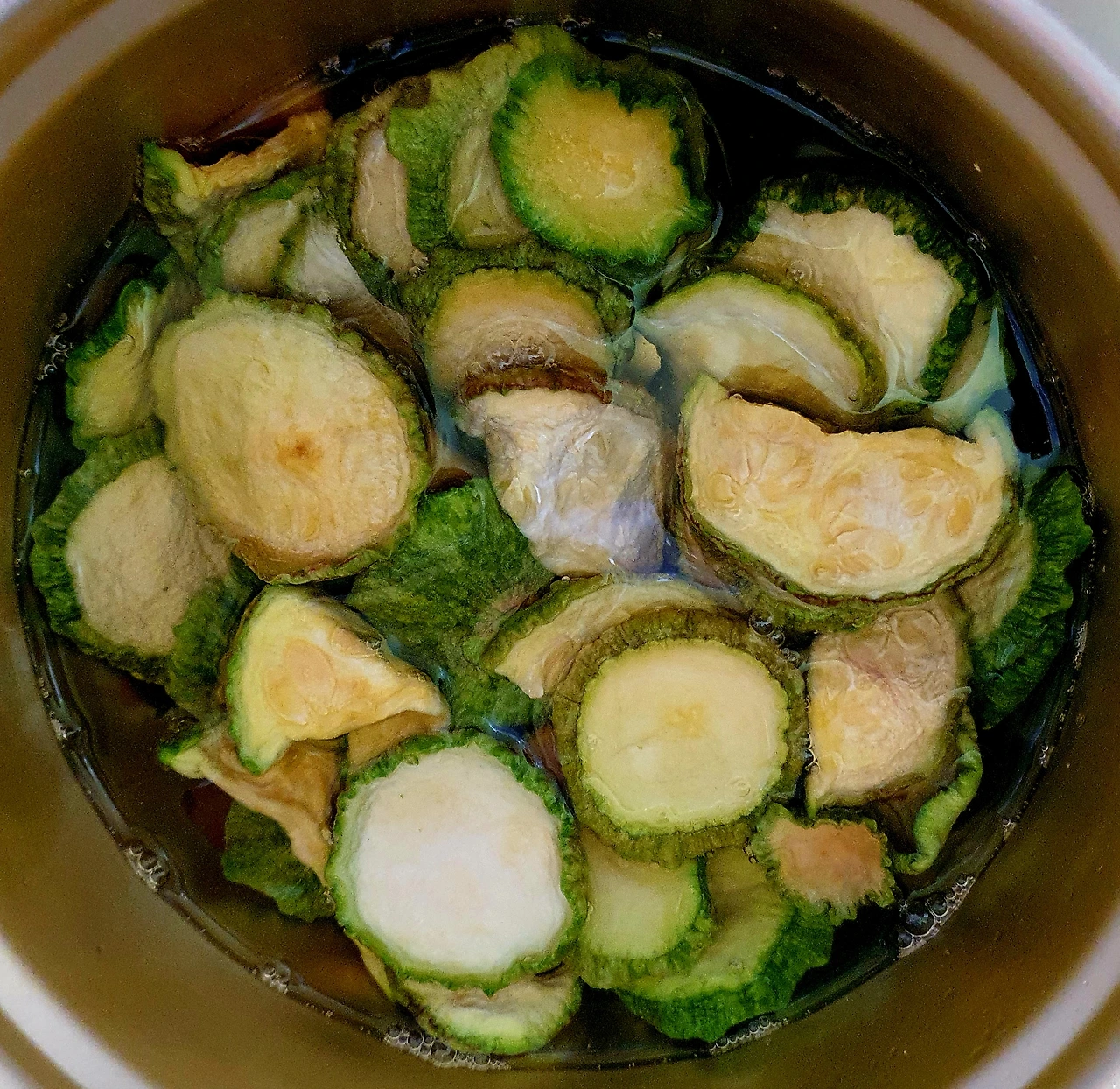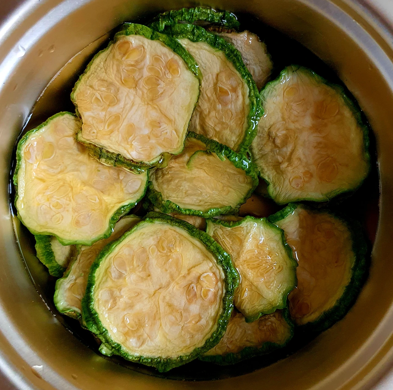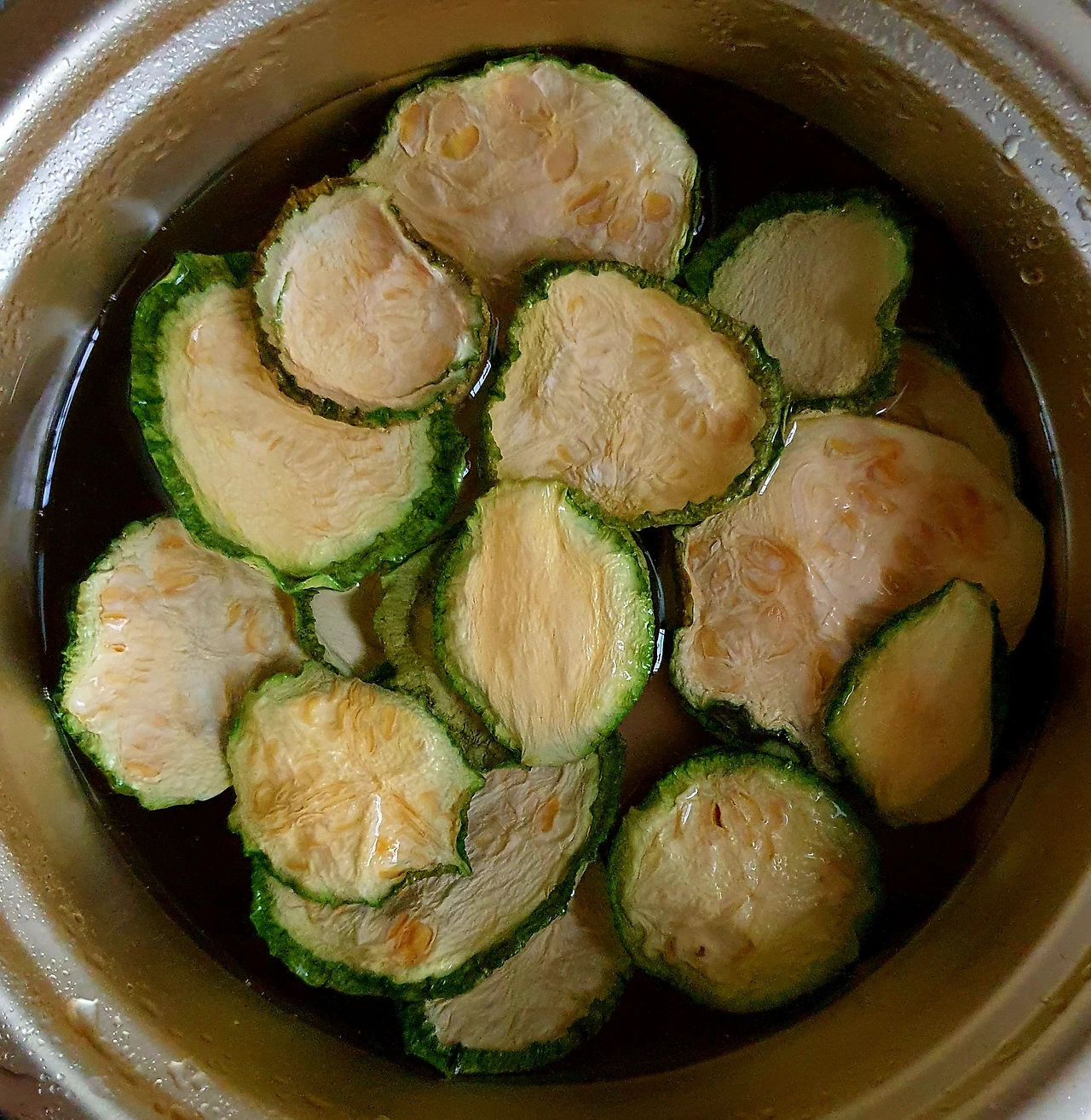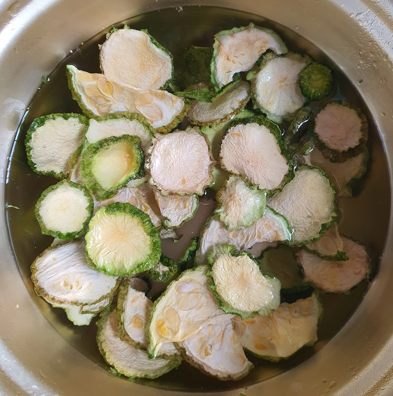 • 둥글게 썬 호박고지는 물에 30분 정도 담가서 불려준 다음 꼭 짜서 물기를 빼준다.