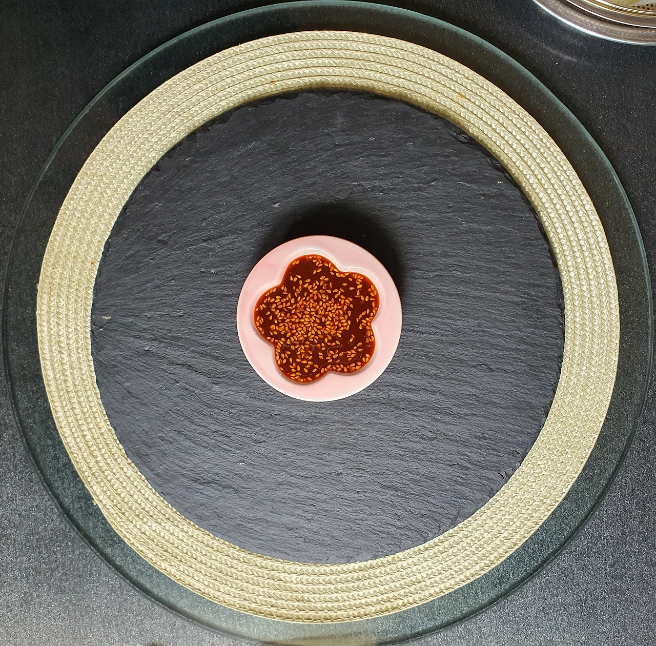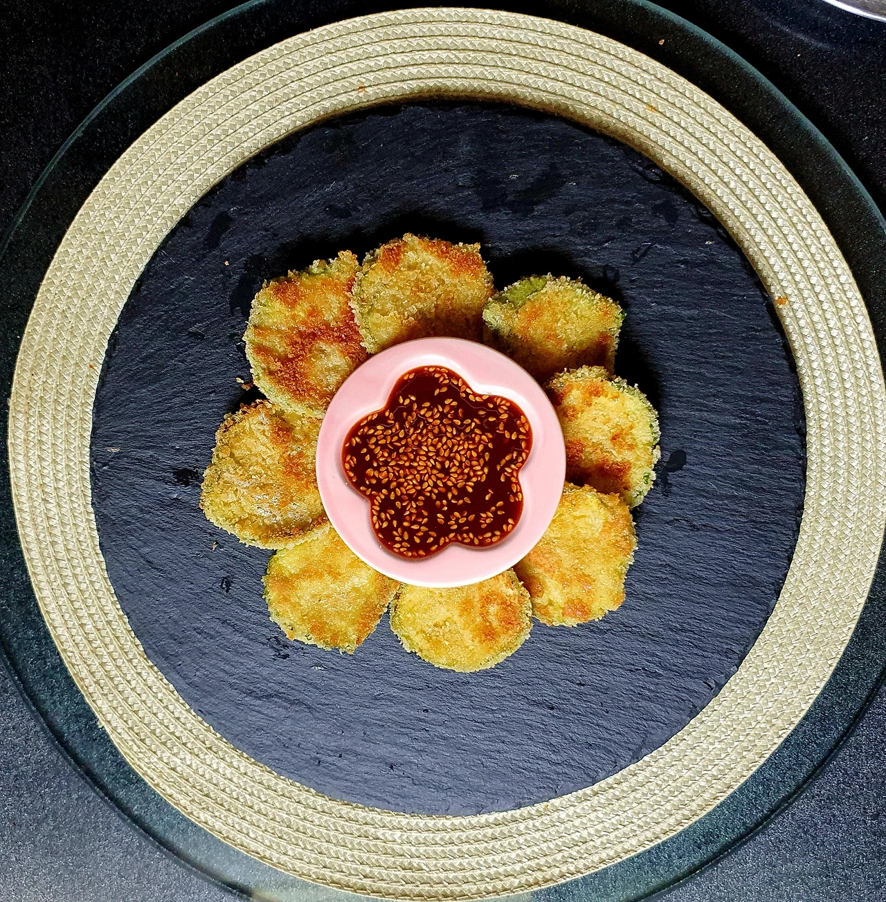 • 완성접시에 호박고지전과 소스를 같이 올려주면 애호박 전과는 전혀 식감이 다른 호박고지전이 완성된다.