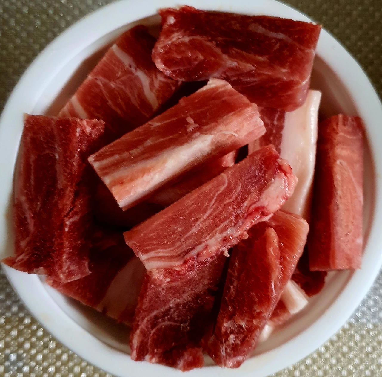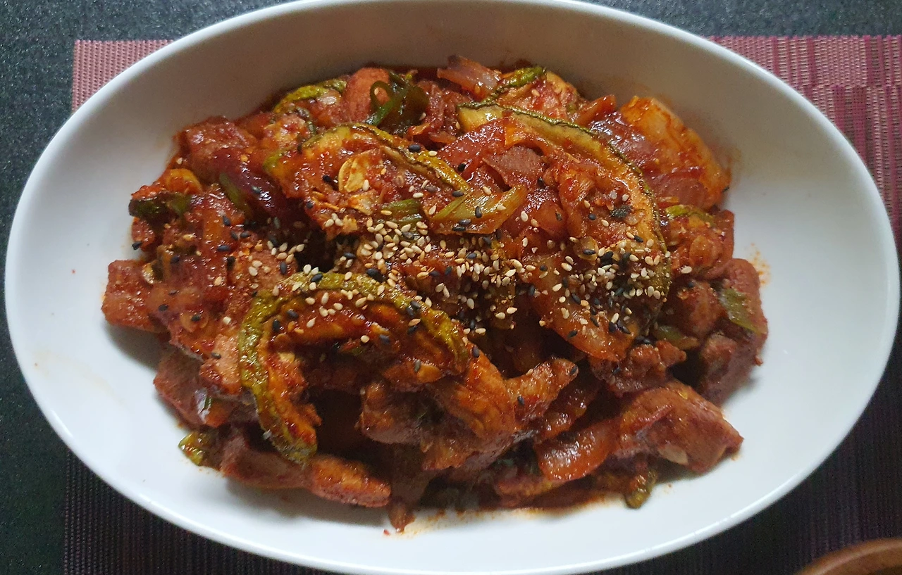 ■ 재료 : 돼지 앞다리살 300g, 호박고지 1컵, 양파 ½개, 대파 ½대, 청양고추 2개, 식용유 1큰술, 참기름 1큰술