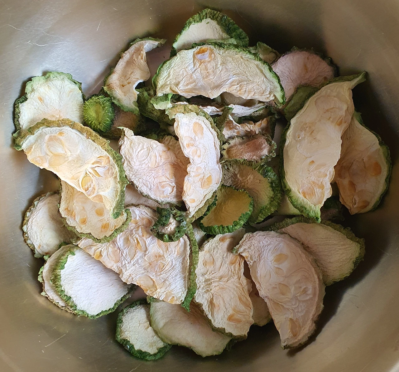 • 건조기 45°에서 24시간을 말리고 다시 뒤집어서 24시간을 말려서 비닐봉지에 담아 밀봉해서 냉장 보관하면 오래 두고 먹을 수 있다.