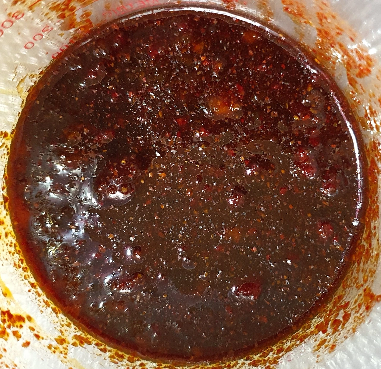 ■ 양념 : 진간장 2큰술, 국간장 1큰술, 일반 고춧가루 1큰술, 청양고춧가루 1큰술, 간 마늘 ½큰술, 맛술 1큰술, 매실청 1큰술, 요리당 2큰술, 국물 진다시 2큰술, 후춧가루 약간, 마지막에 고춧가루 1큰술 추가