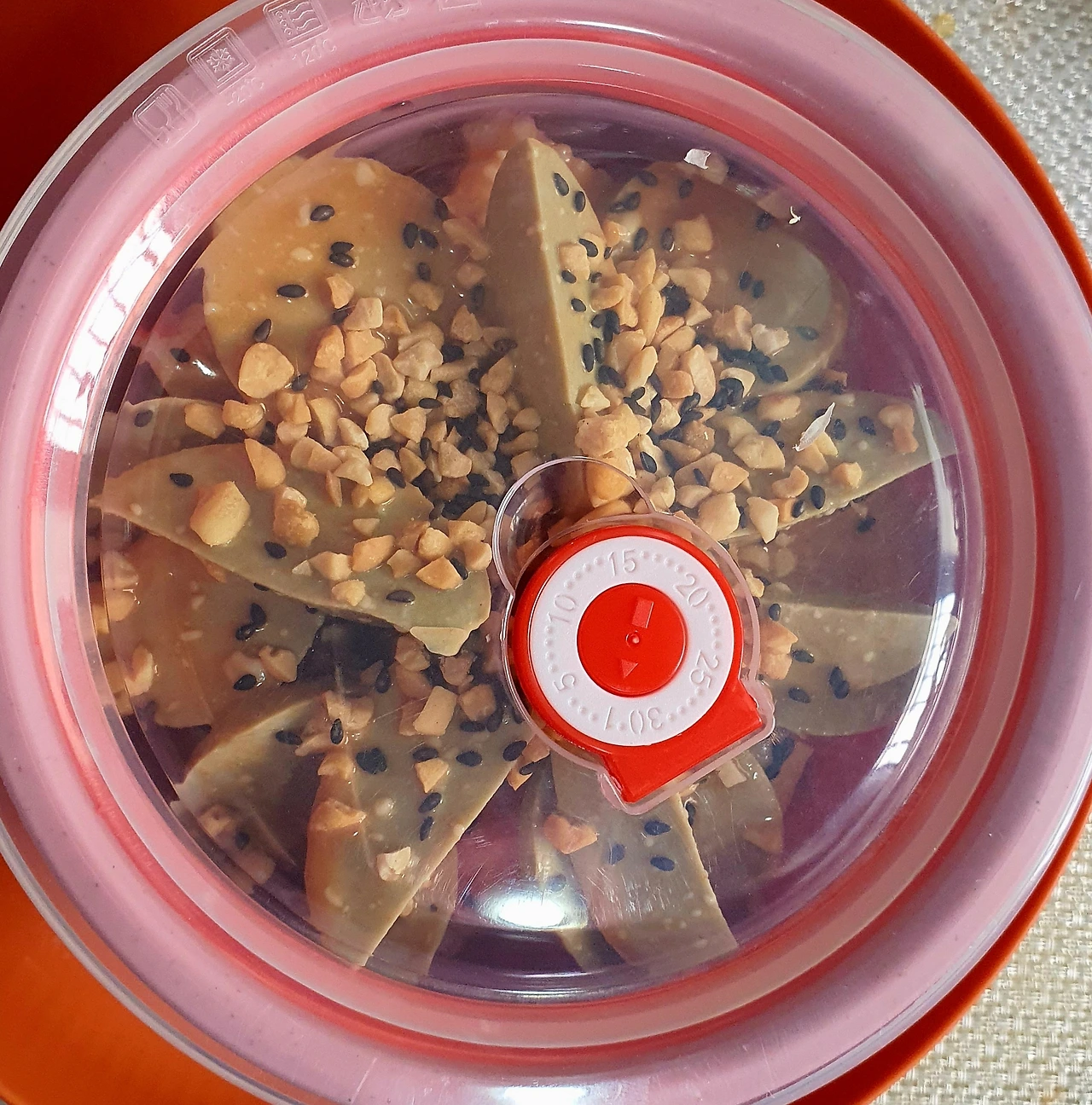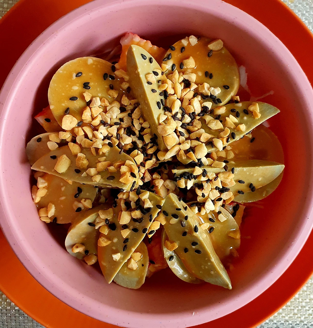 • 위에 소스를 뿌려주고 땅콩가루와 흑인자를 솔솔 뿌려 소풍을 떠나봐요...