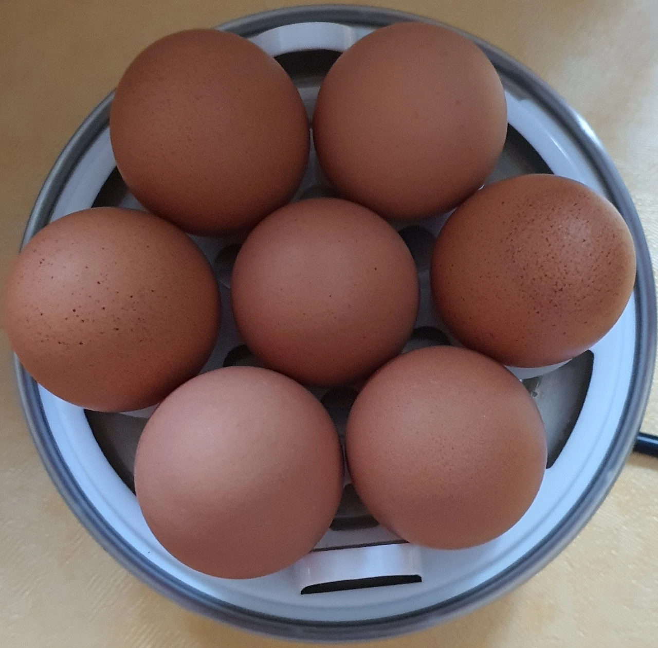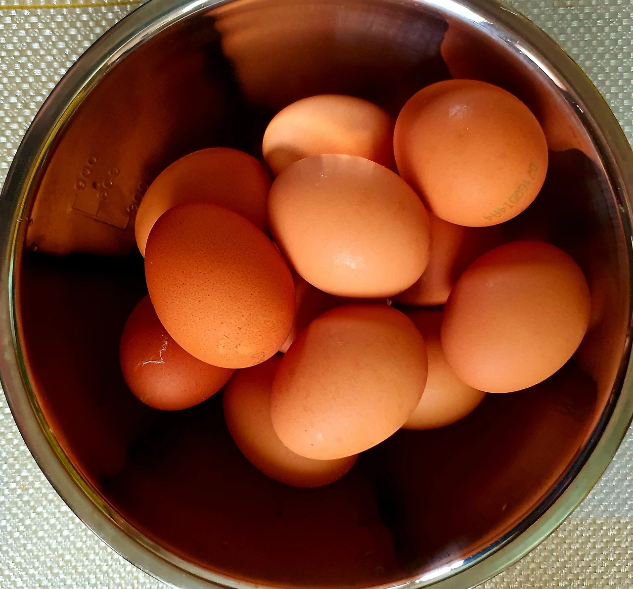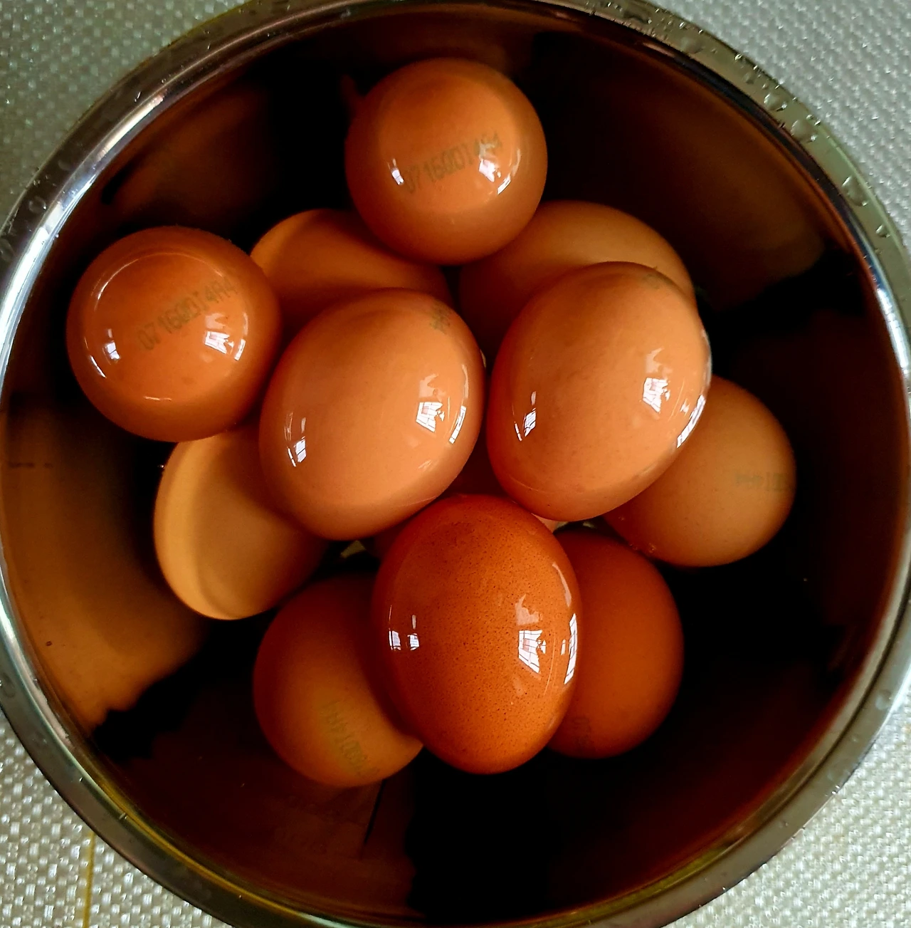 • 압력솥을 열고 구운 달걀을 찬물에 씻어 드시면 쫄깃한 식감의 군달걀 완성.