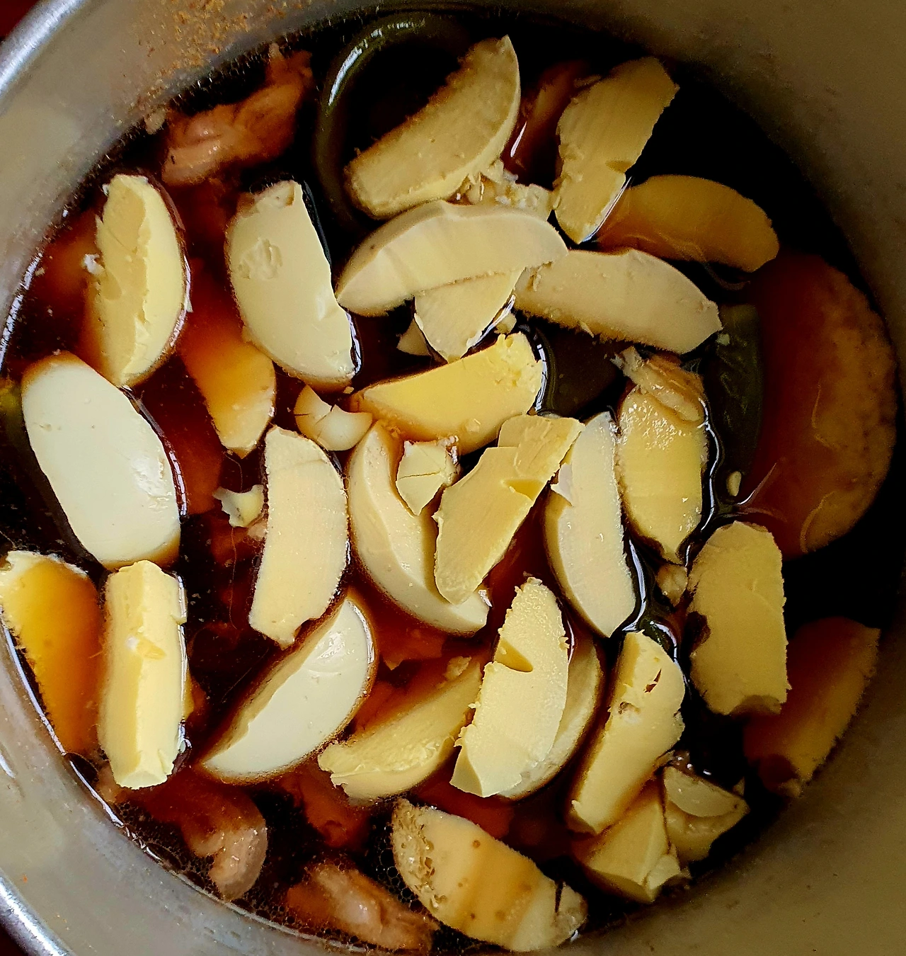 • 육수재료로 먼저 육수를 만든 후에 모든 재료를 넣고 육수가 반으로 줄 때까지 졸여주면 완성.