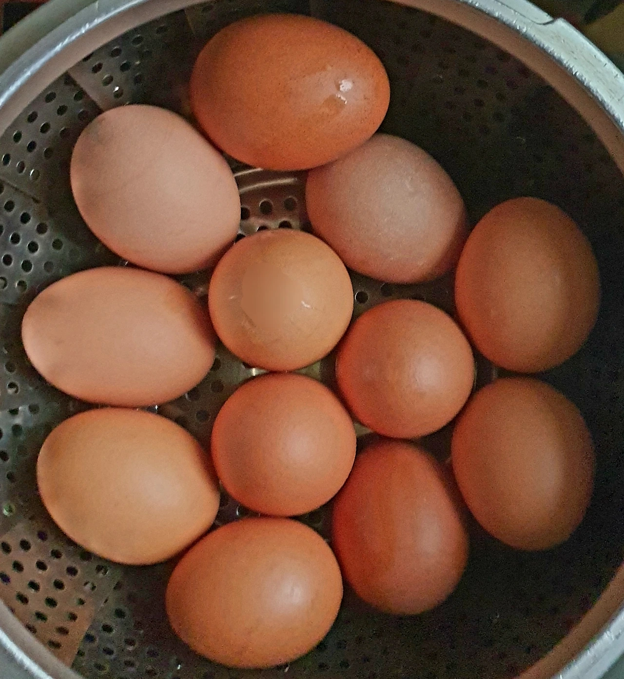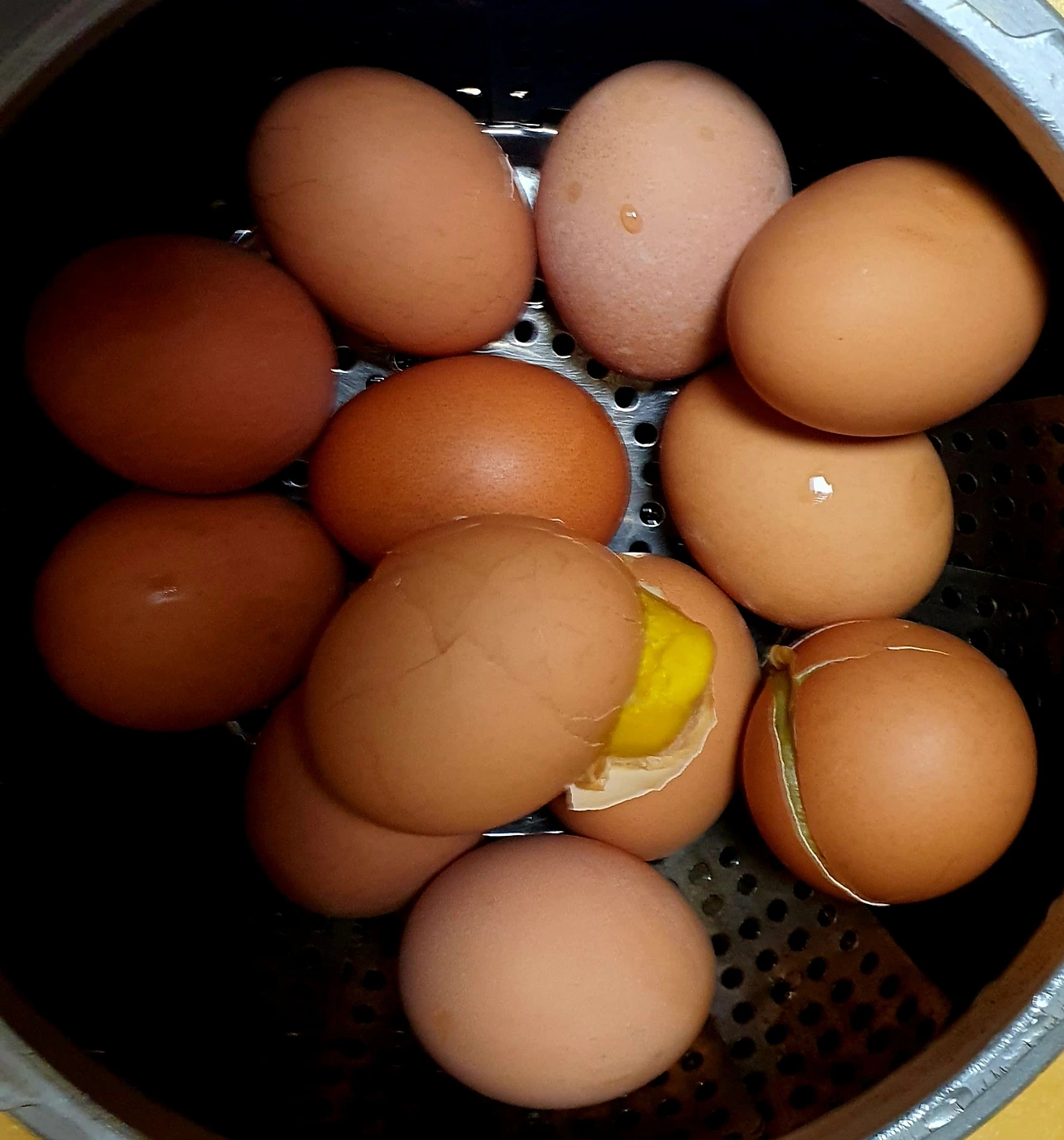 • 스테인리스 찜기를 압력솥에 넣고 위에 달걀을 올려 강불에서 끓여준다.