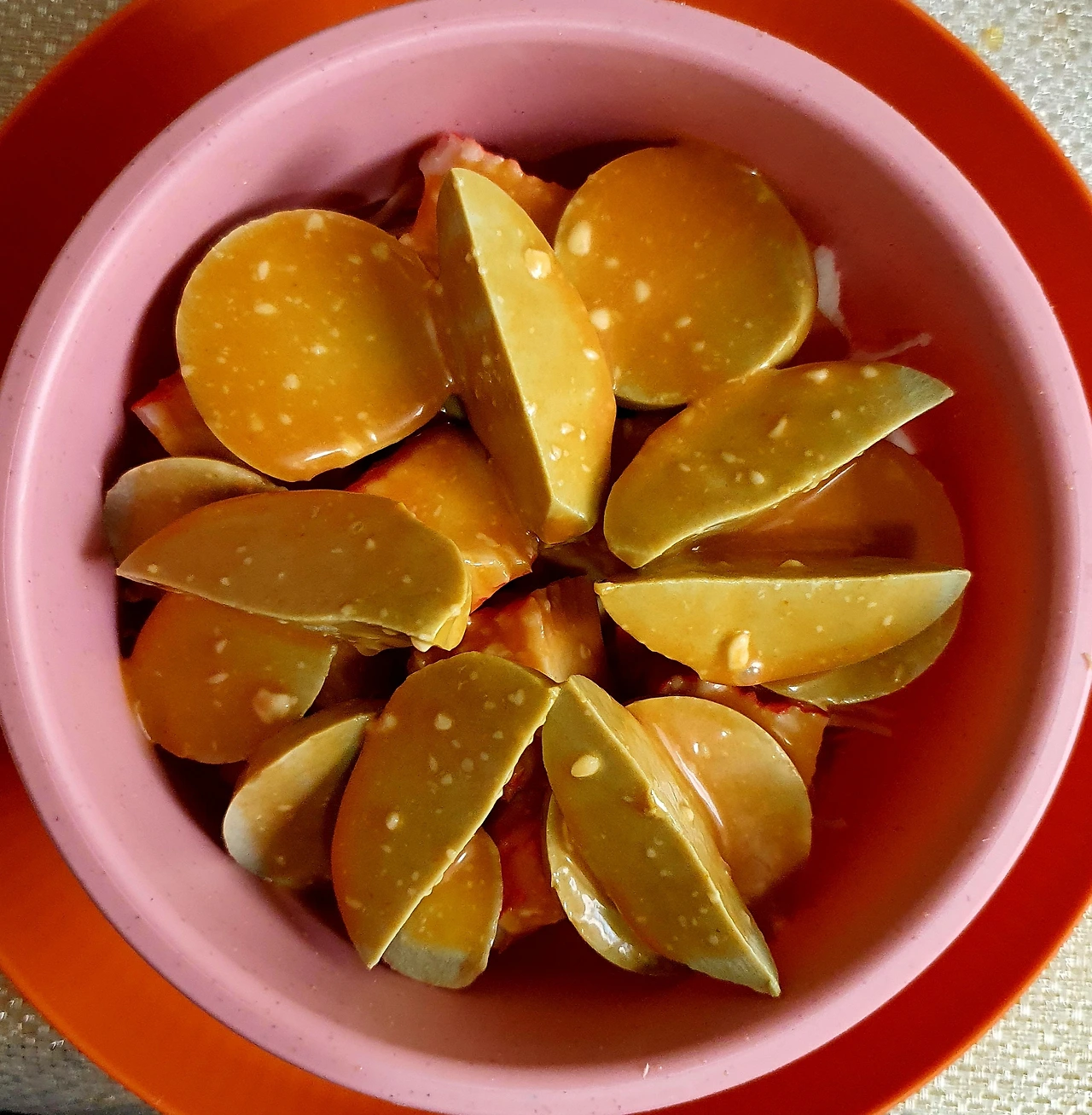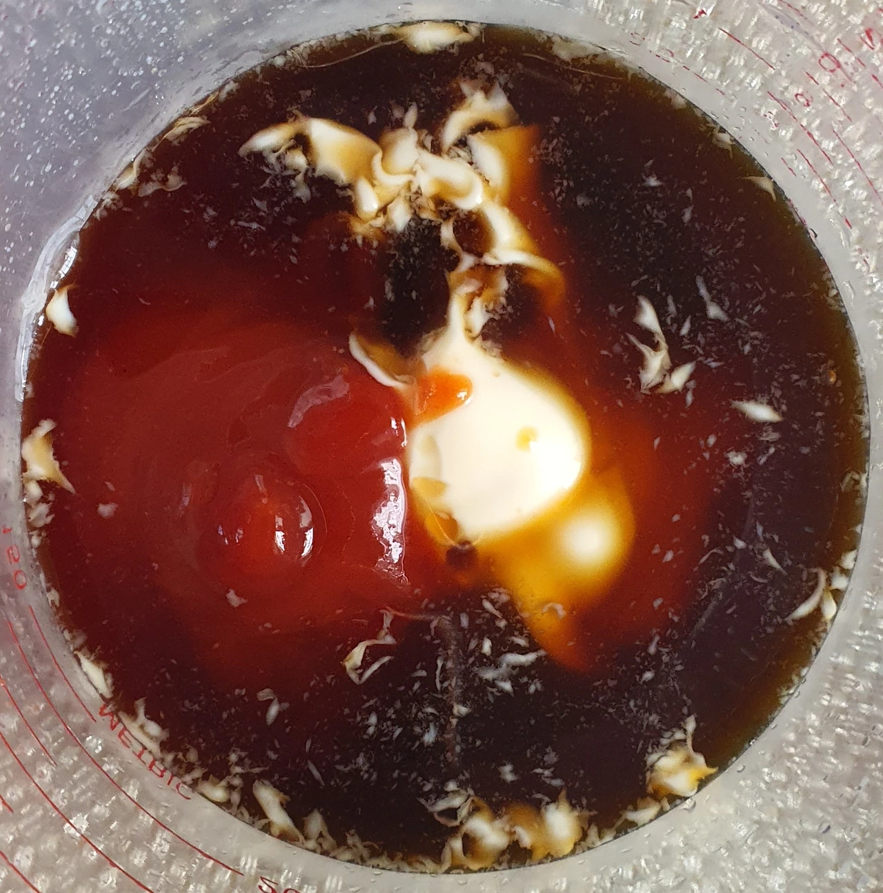 ■ 양념 : 간장 ⅓컵. 까나리액젓 ¼컵. 굴소스 2큰술. 매실청 ½컵. 설탕 2큰술. 올리고당 2큰술. 사골분말 1큰술. 육수 1컵