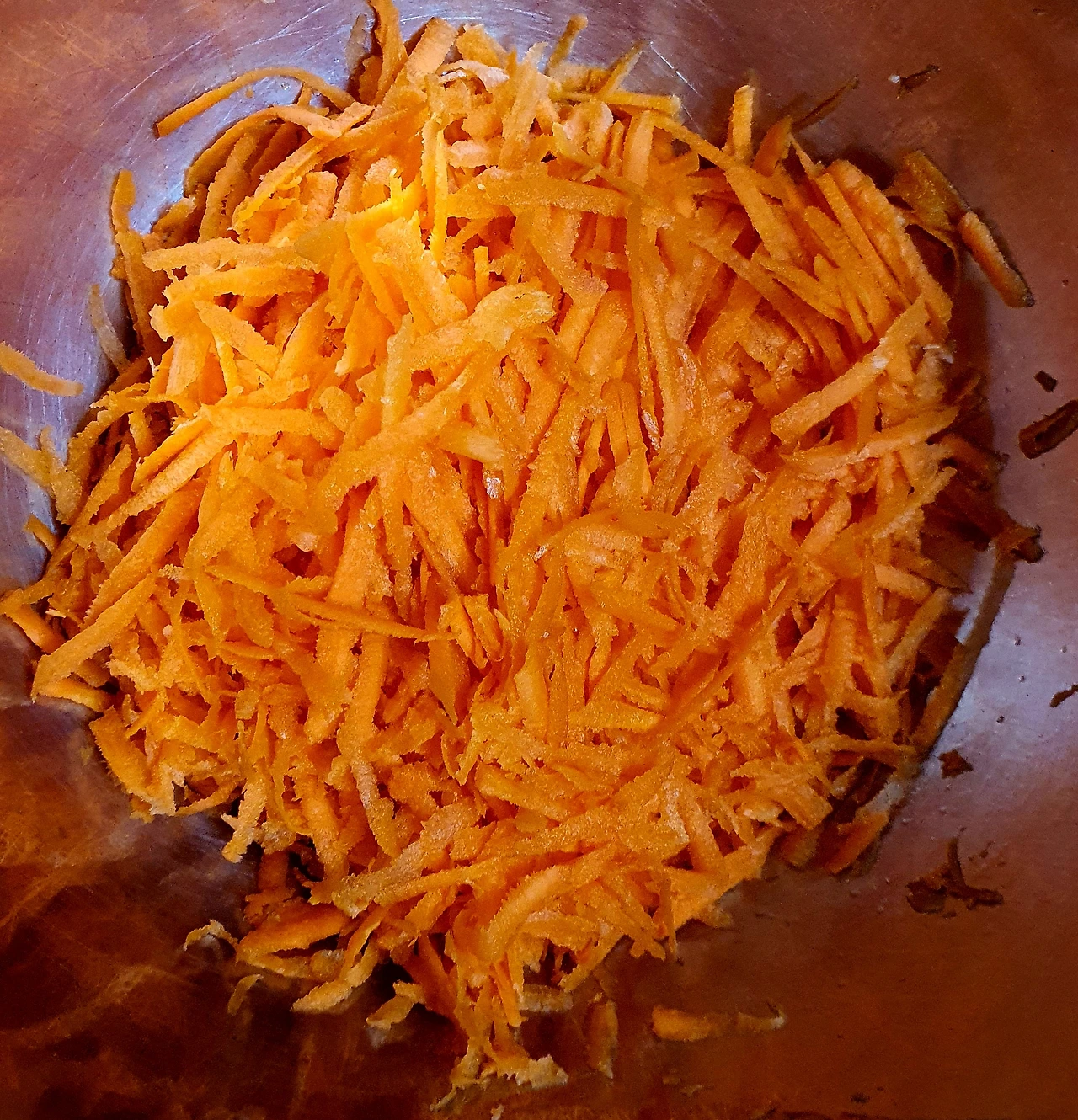 • 지용성 비타민이 풍부한 당근은 채를 썰어 기름 조금 두르고 볶아준다.