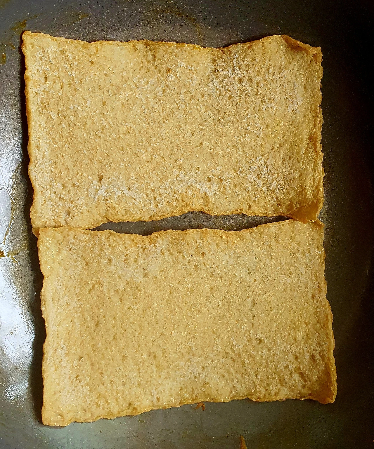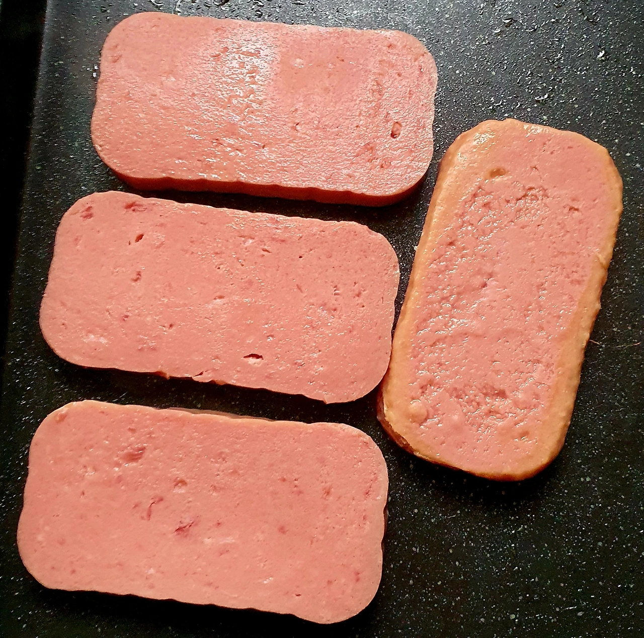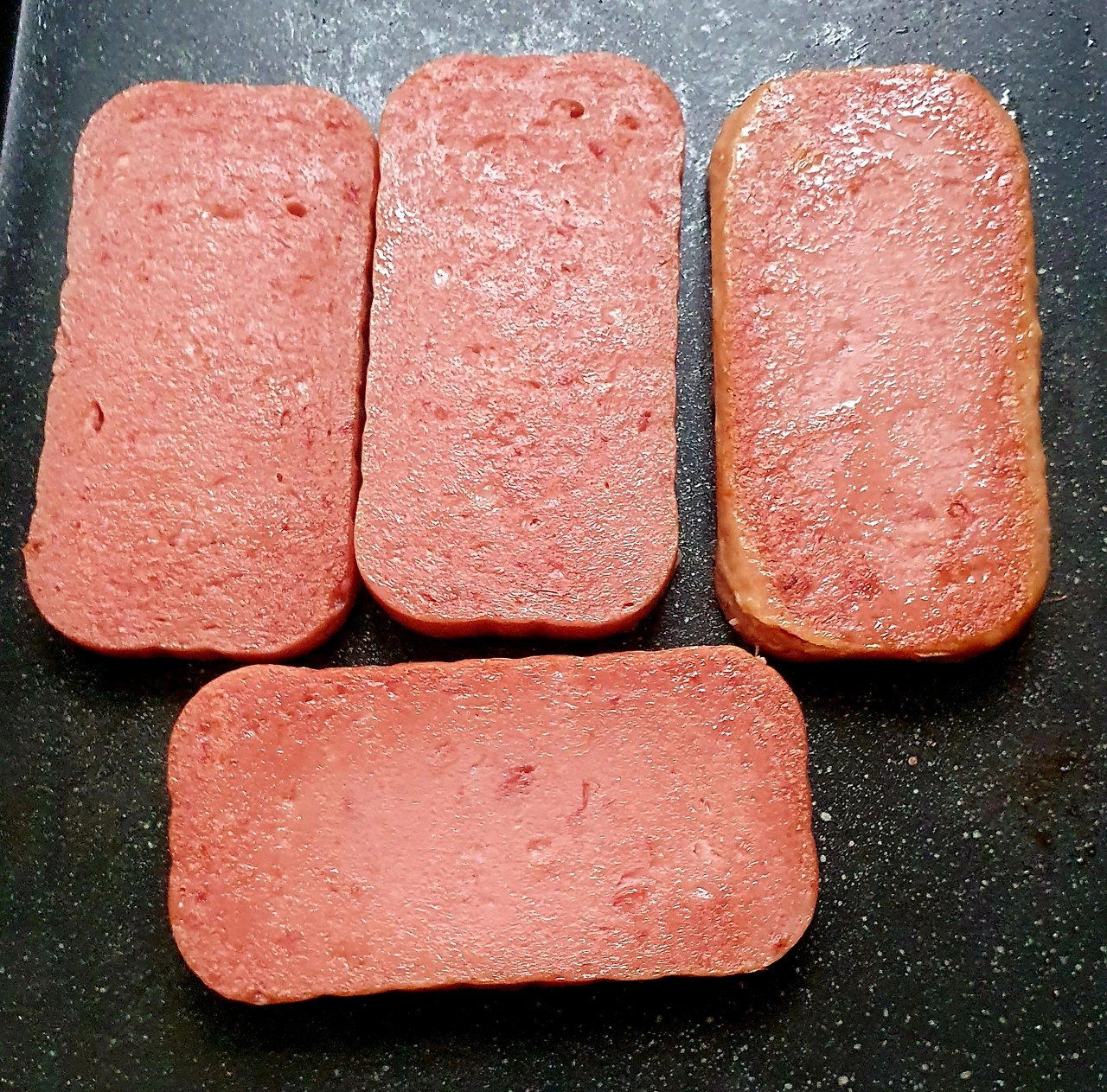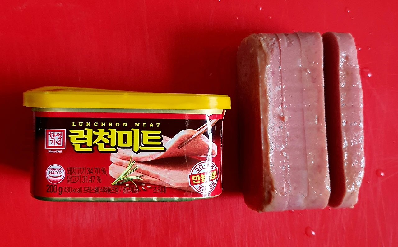 • 햄은 4등분으로 썰어 끓는 물에 데쳐서 구워 준다.