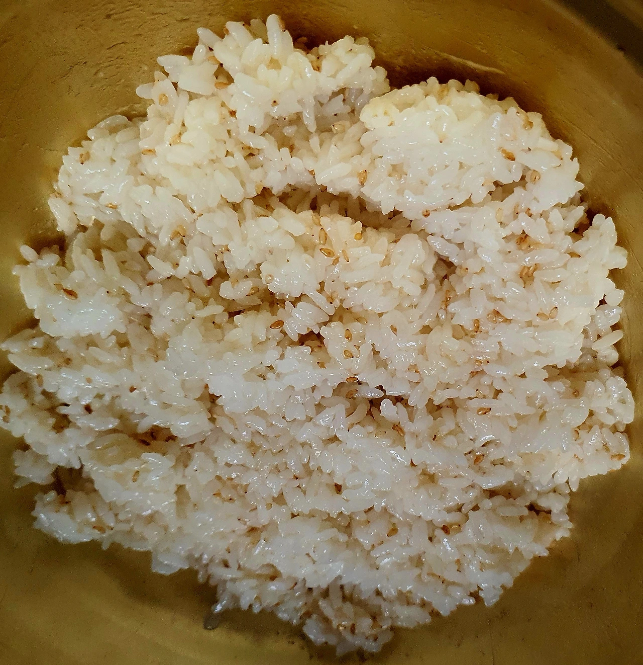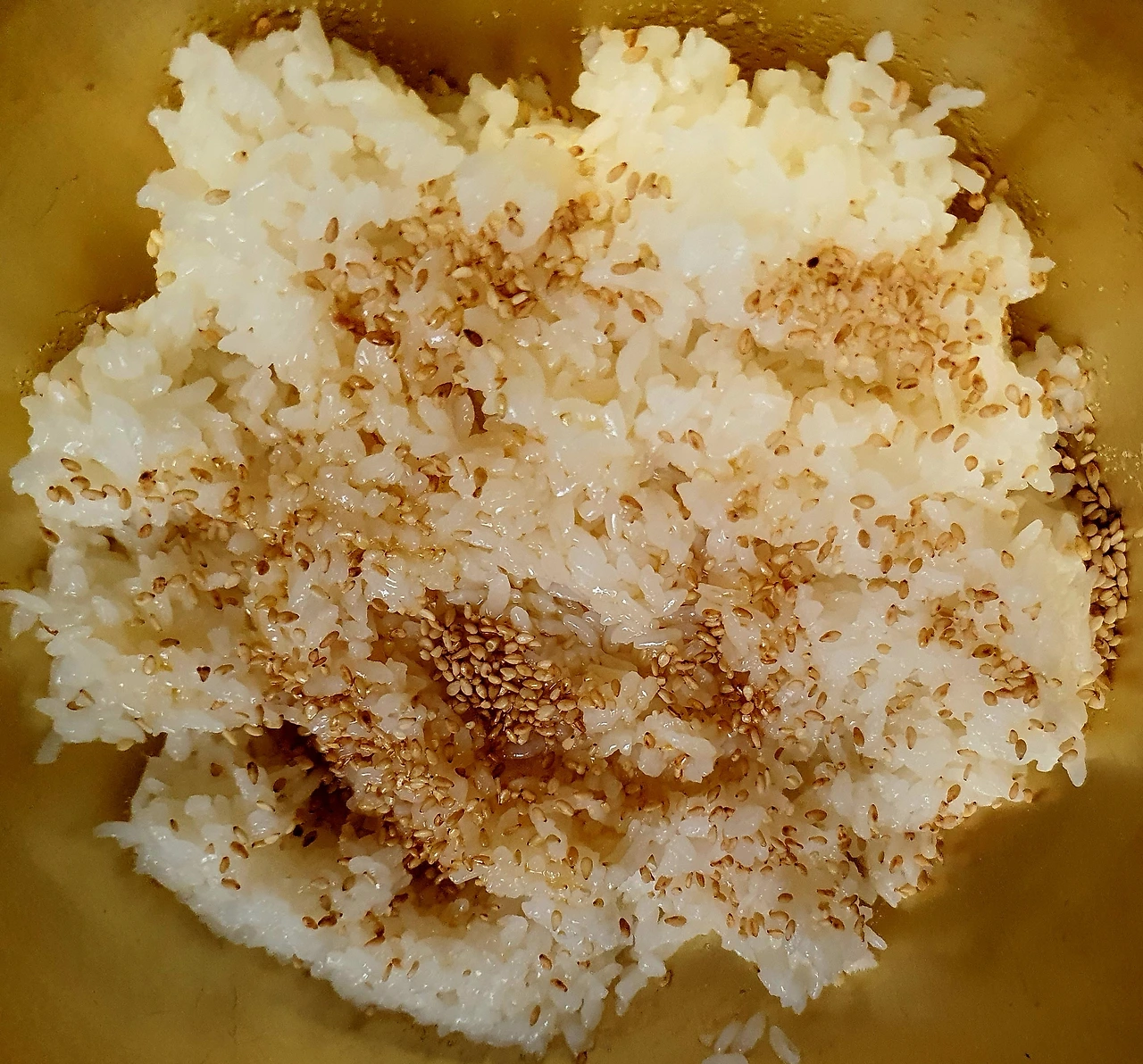 • 밥은 참기름. 소금. 통깨를 넣고 비벼서 준비한다.