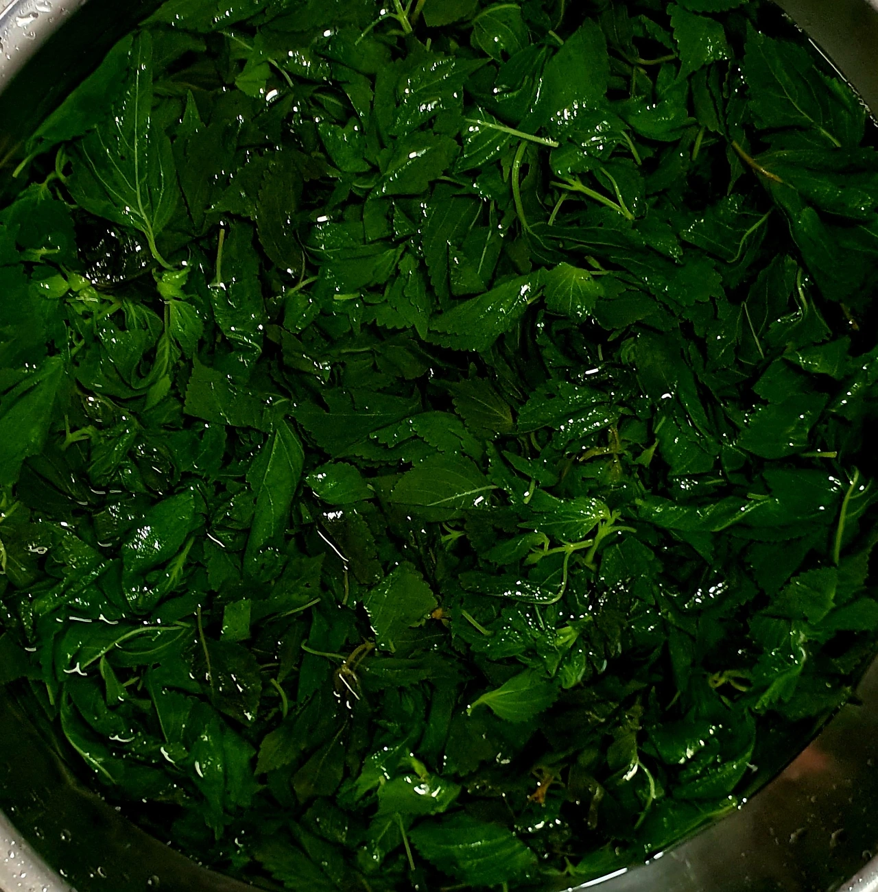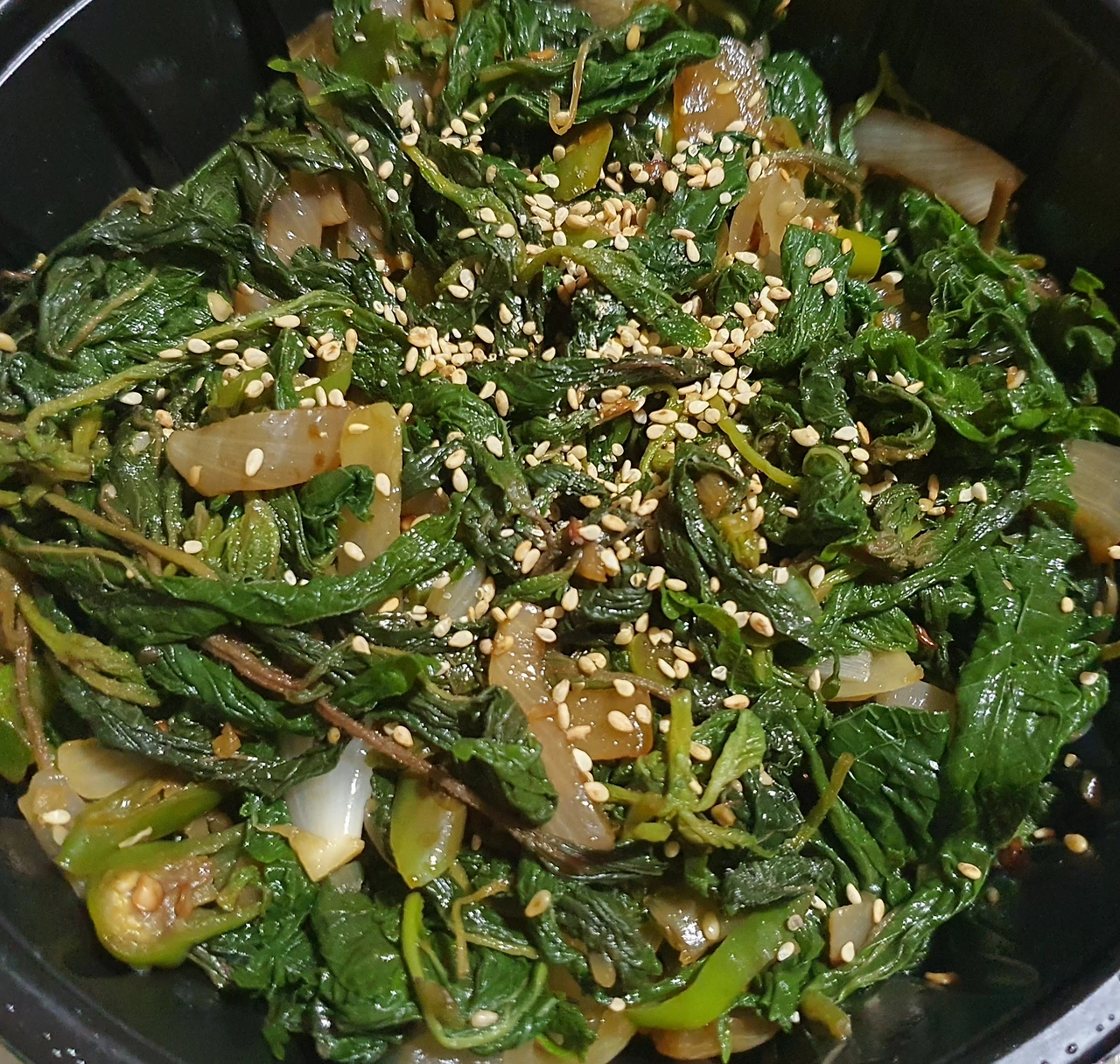• 깨순은 끓는 물에 데쳐서 다진 마늘 1큰술, 참기름 2큰술, 국간장 1큰술, 참치 액젓 2큰술, 깨소금 1큰술, 전자랜즈에 돌린 양파 1개, 양파와 같이 돌린 청양고추 2개, 매실청 2큰술, 꿀 1큰술을 넣고 나물을 버무려 준비한다.