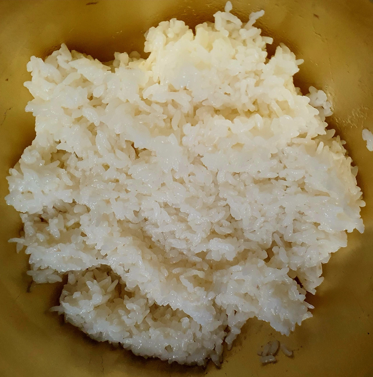 • 따뜻한 밥은 살짝 식혀서 단촛물을 골고루 뿌린 후에 젓가락으로 버무려 준다. 단촛물은 시판용을 사용해도 되고, 요리헌터는 단촛물을 넉넉하게 만들어 냉장보관해서 사용했음.