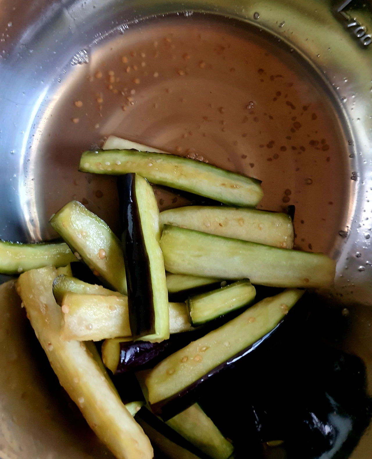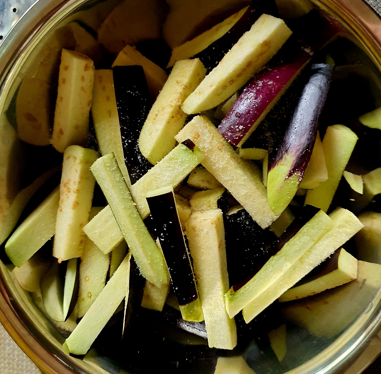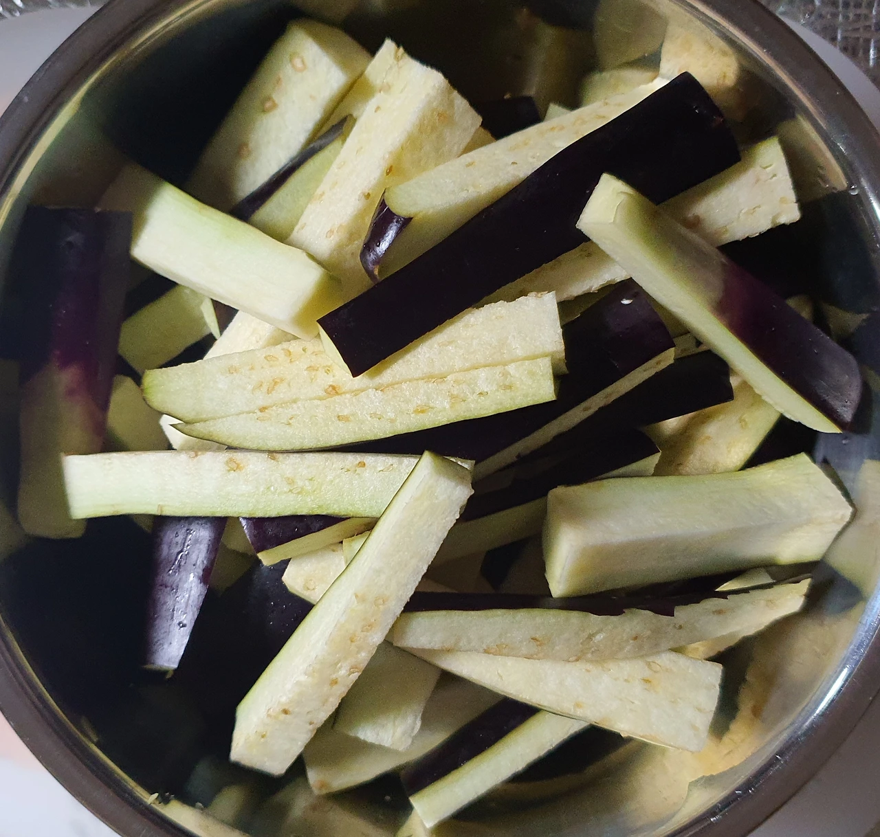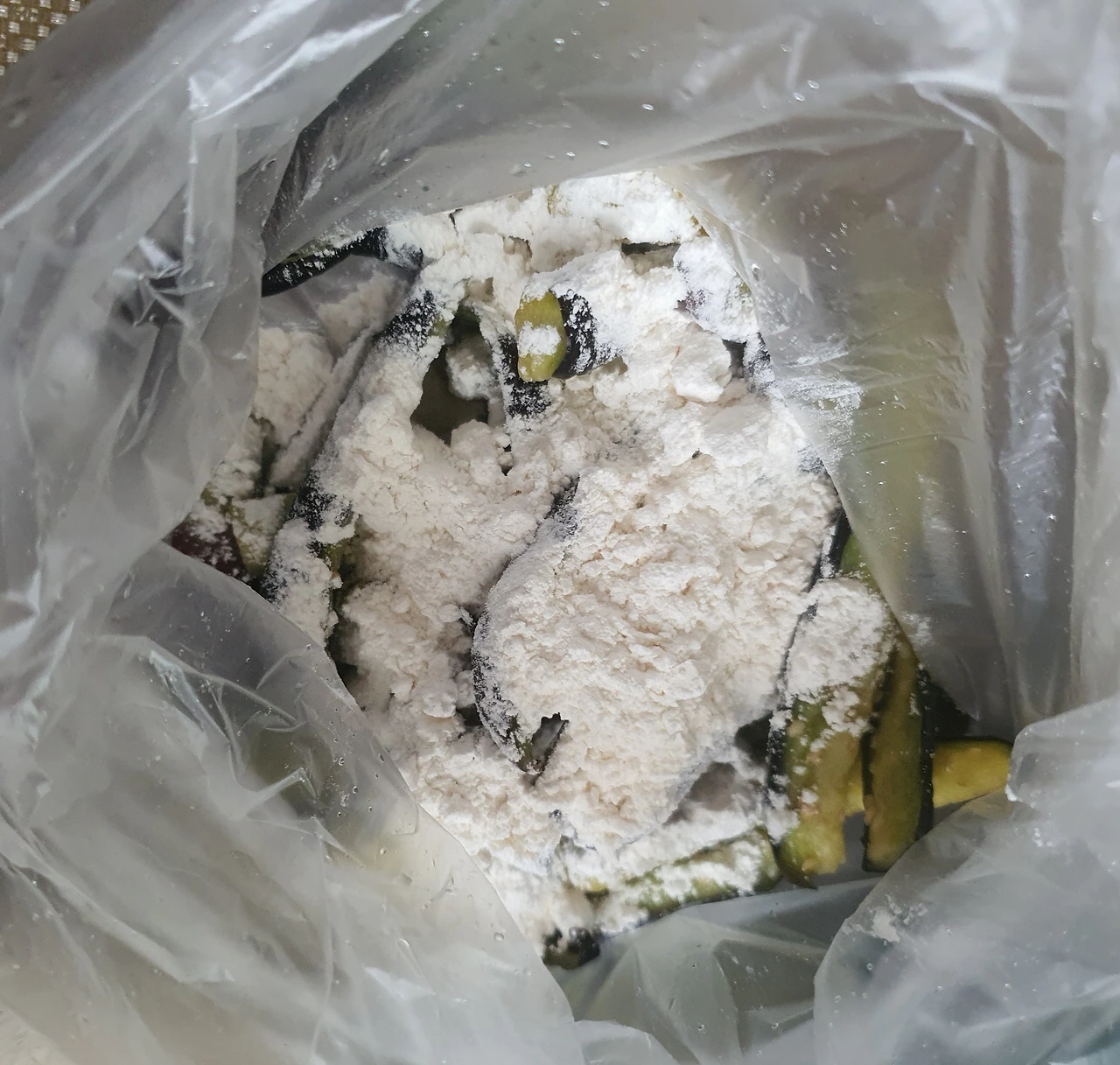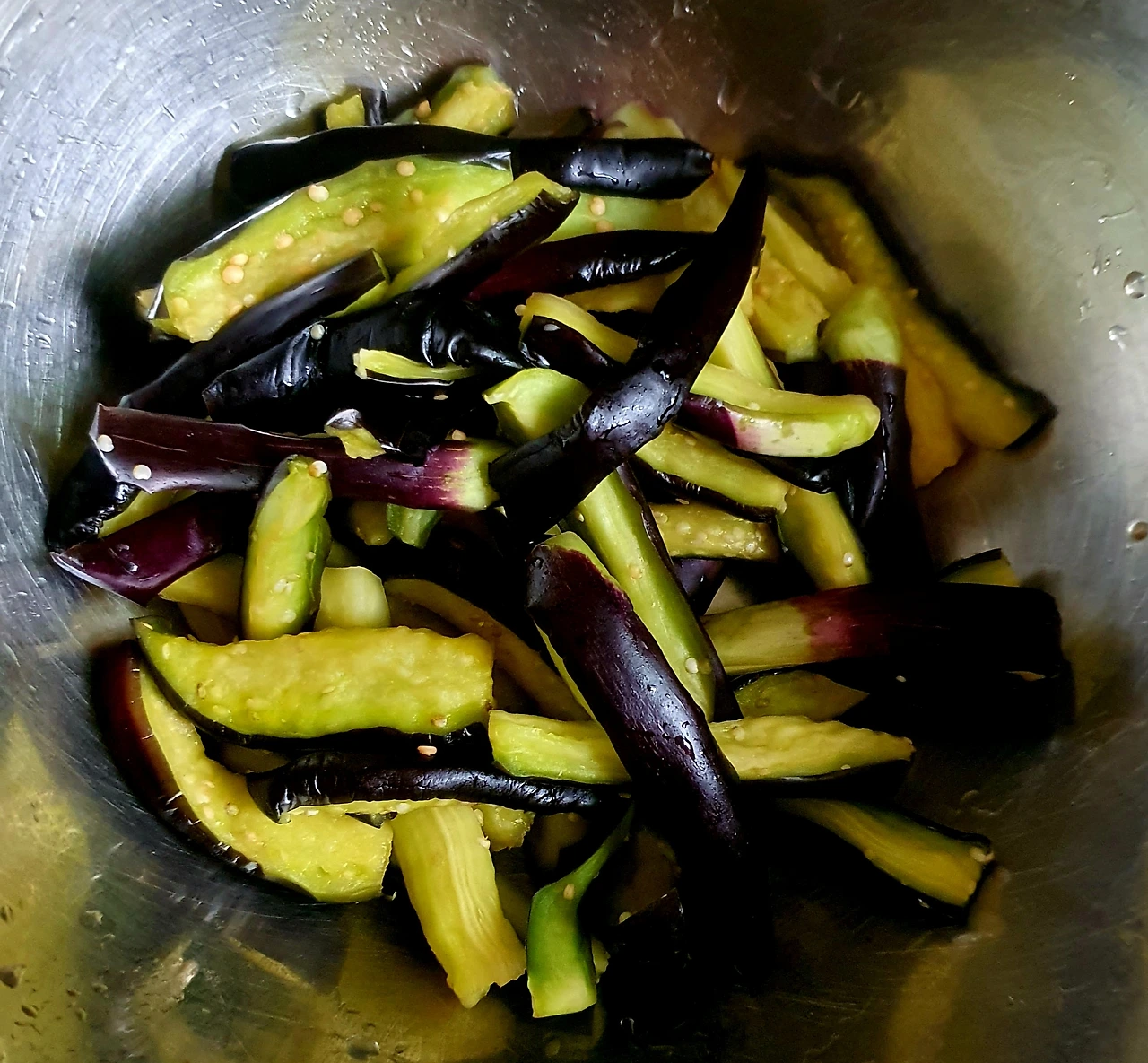 • 가지를 길게 썰어서 소금 조금 넣고 15분 정도 절인 후 꼭 짜서 수분을 어느 정도 제거하고 비닐봉지에 담아 찹쌀가루에 버무려서 전자레인지에 4~5분 돌려 쪄서 식힌 후에 양념장에 버무려 준비한다. 이러면 가지무침의 식감이 달라짐. 넉넉하게 만들어 반찬으로 씀.