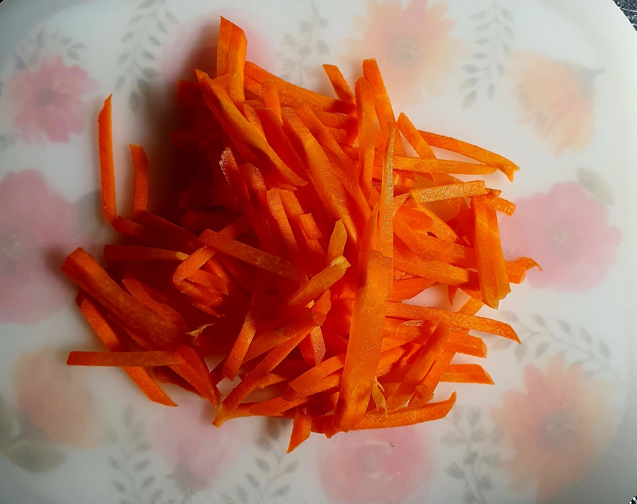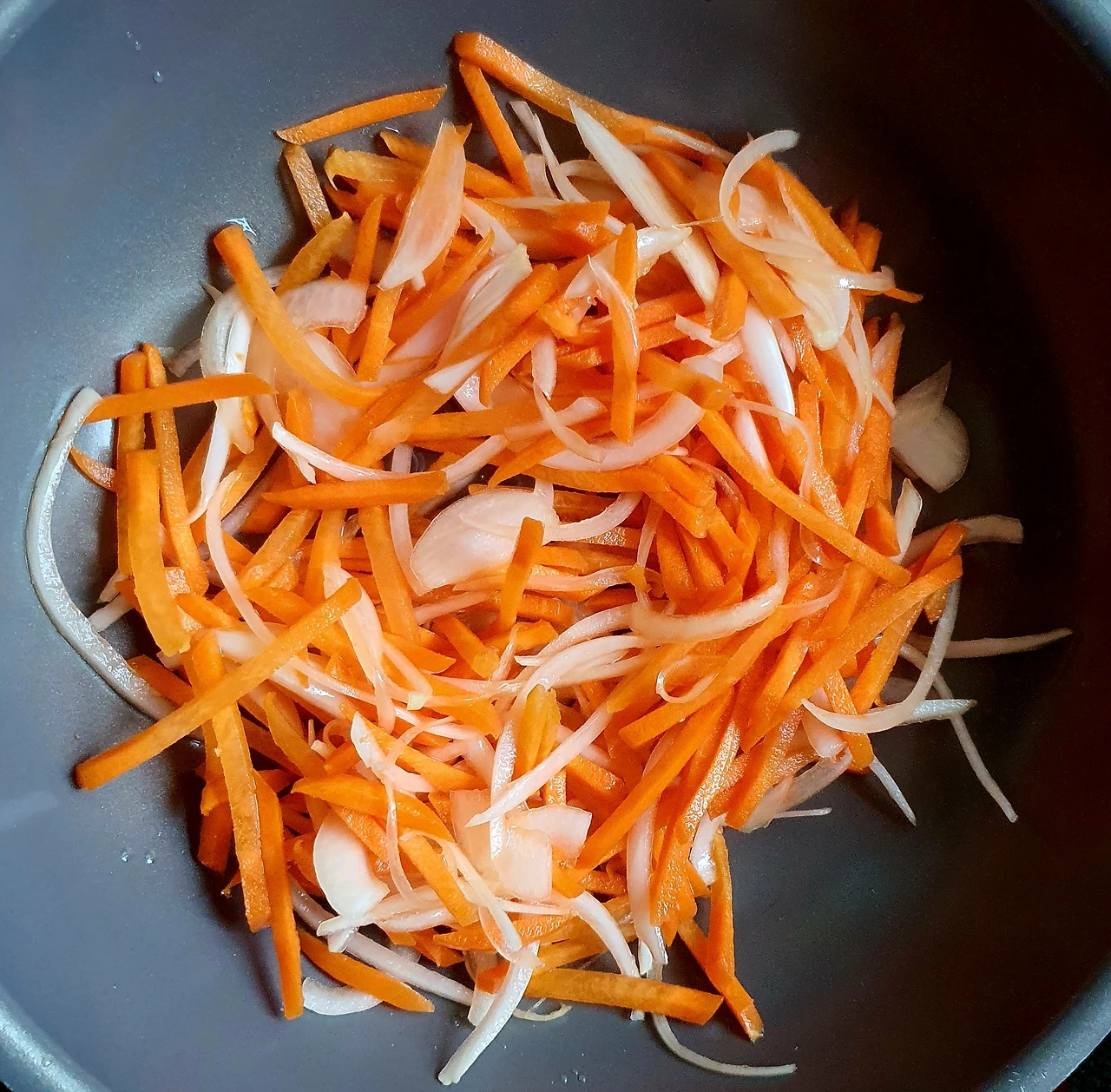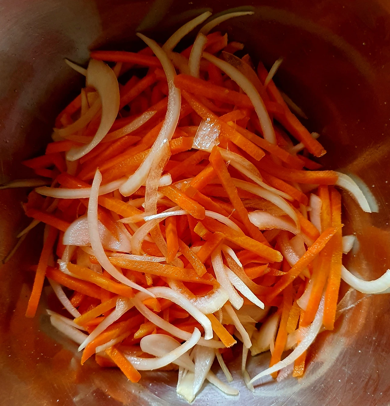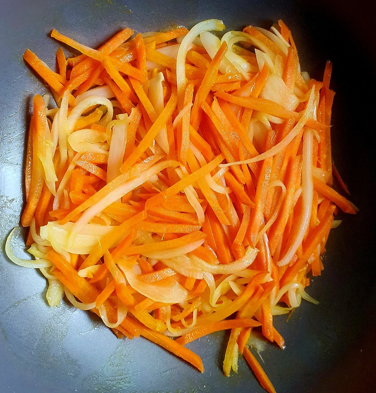 • 당근과 양파는 채를 썰어 소금에 살짝 절여 기름 살짝 둘러 볶아서 준비한다. 자색 양배추는 얇게 채를 썰어준다.