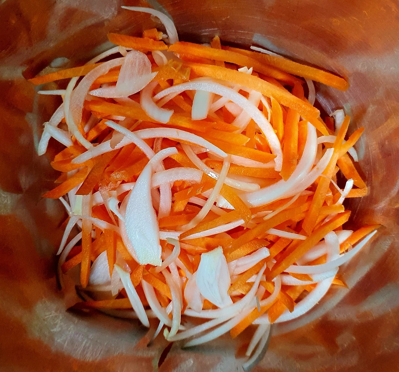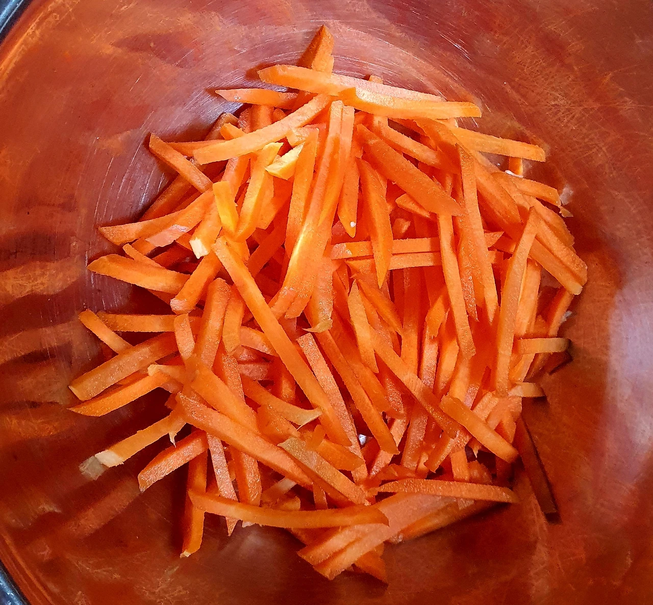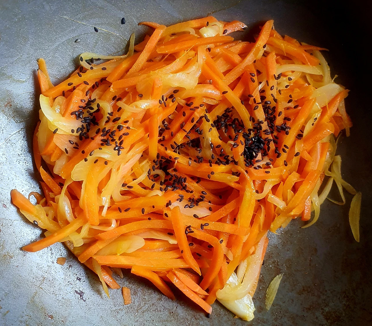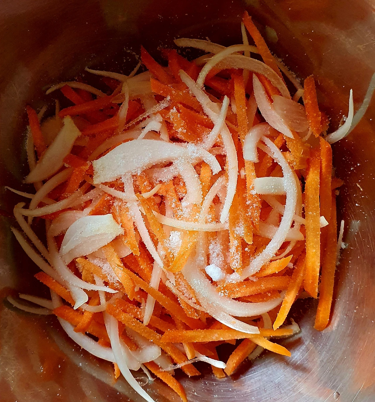 • 당근과 양파는 채를 썰어 소금에 살짝 절여 기름 살짝 둘러 볶아서 준비한다. 자색 양배추는 얇게 채를 썰어준다.