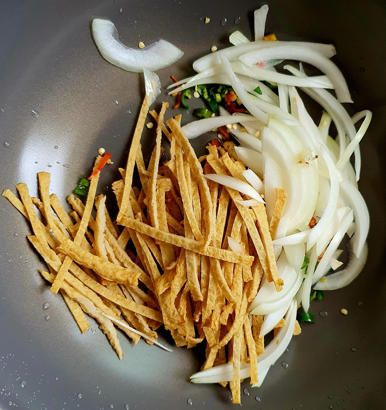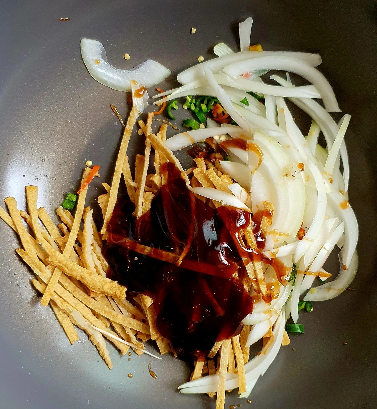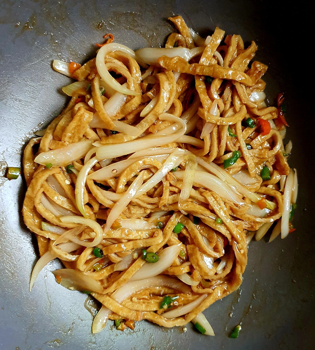 • 웍에 기름을 두르고 준비한 어묵. 양파. 청양고추를 때려 넣고 볶음용 양념으로 같이 넣고 볶아준다.