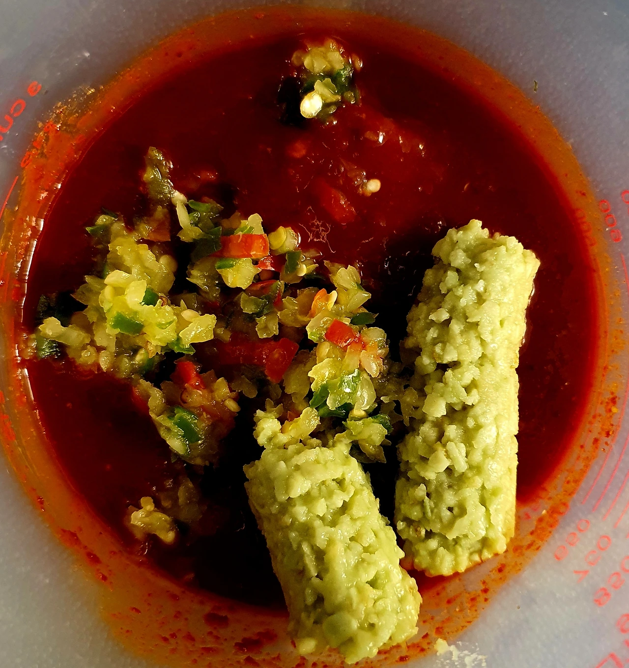 ■ 양념장 : 간장 1큰술. 고추장 1큰술. 고춧가루 1큰술. 고추냉이 1큰술. 케첩 1큰술. 원당 1큰술. 감식초 1큰술, 매실청 1큰술, 다진 마늘 1큰술. 다진 청양고추 1개. 제로 사이다 5큰술, 통깨 1큰술