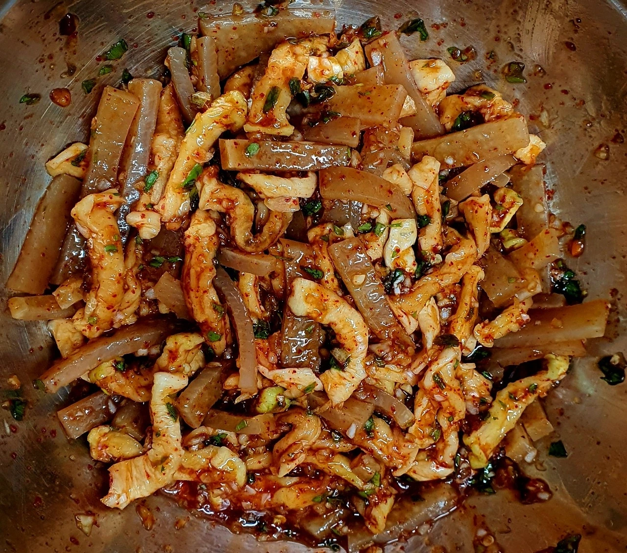 • 무말랭이를 그냥 열수 처리(뜨거운 물에 우려내는 것)하는 것보다는, 볶아서 열수 처리하는 것이 더욱 효능이 좋다.