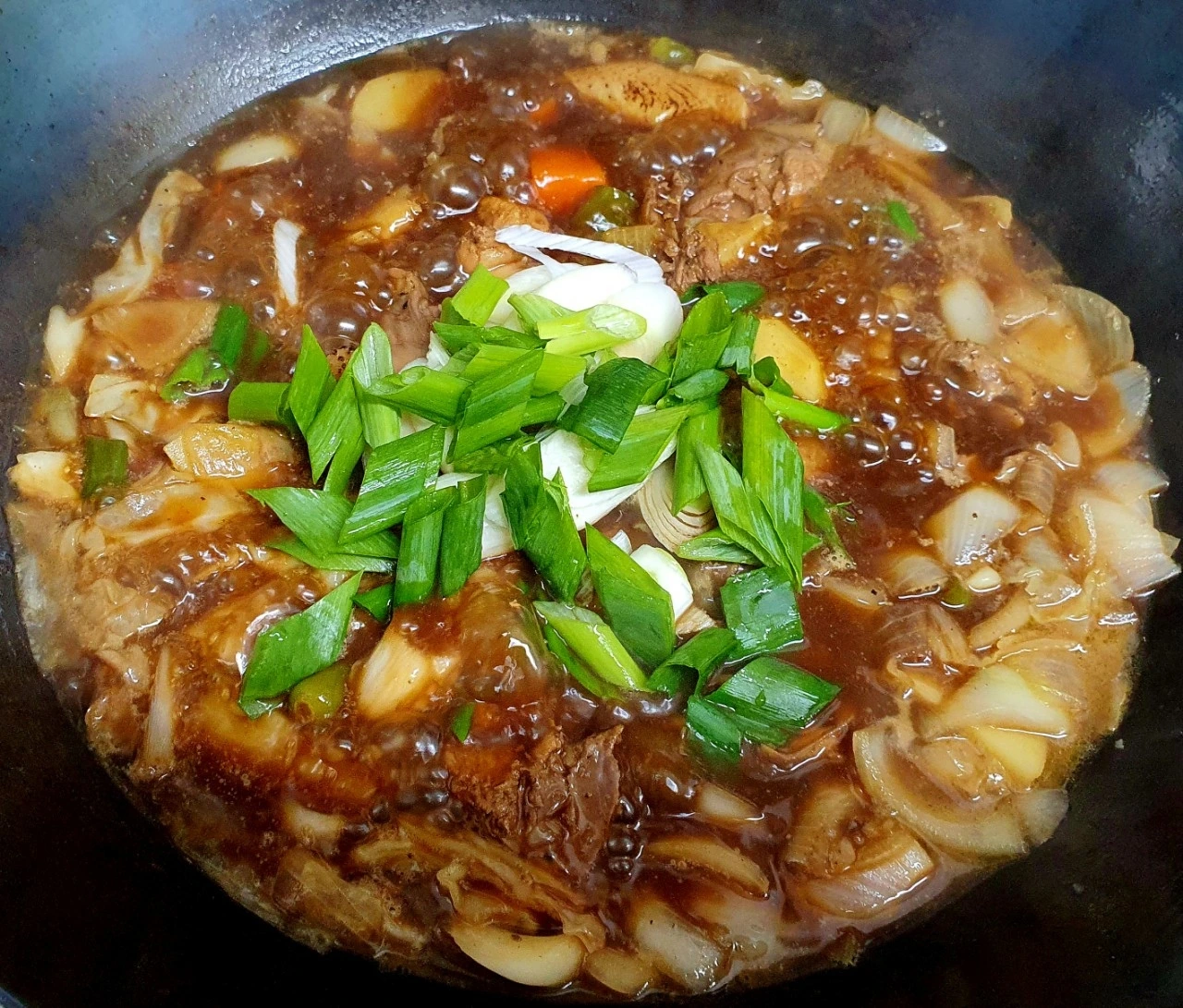 색을 내기 위해 춘장을 사용하고 좋아하는 당면을 넉넉히 넣어서요.