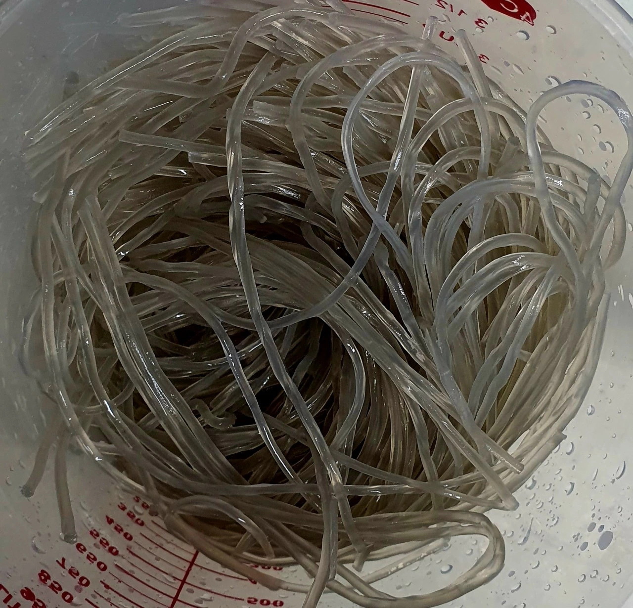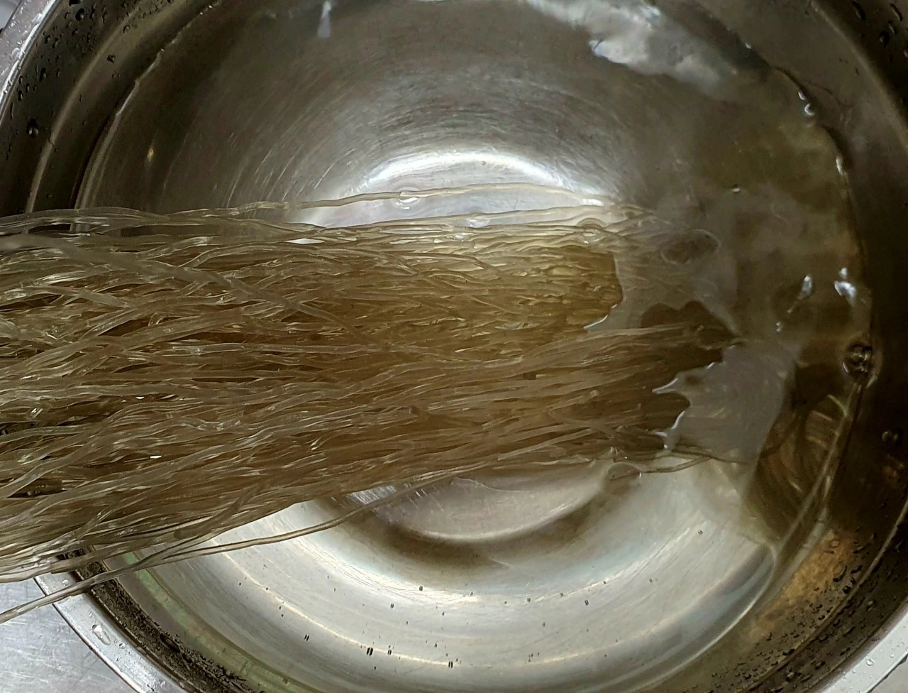 ❹ 당면은 찬물에 50분간 불려준 뒤 채반에 받쳐 물기를 빼줍니다.
