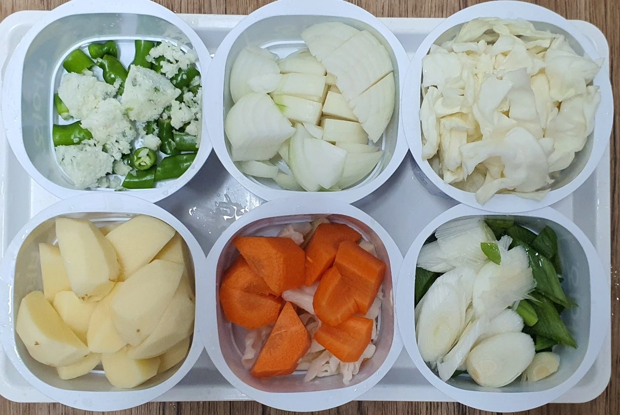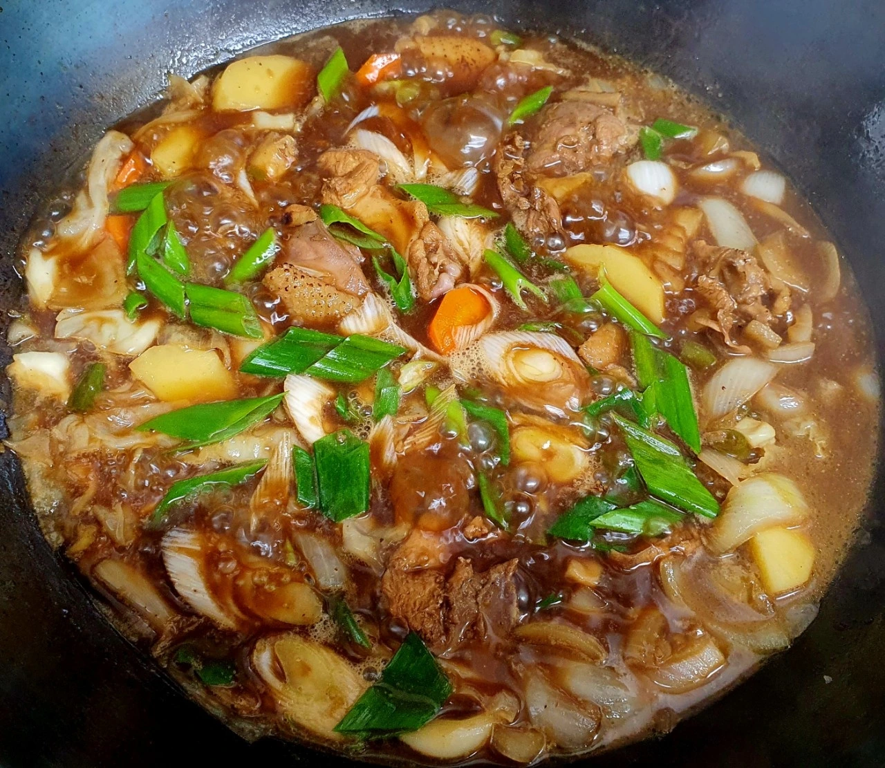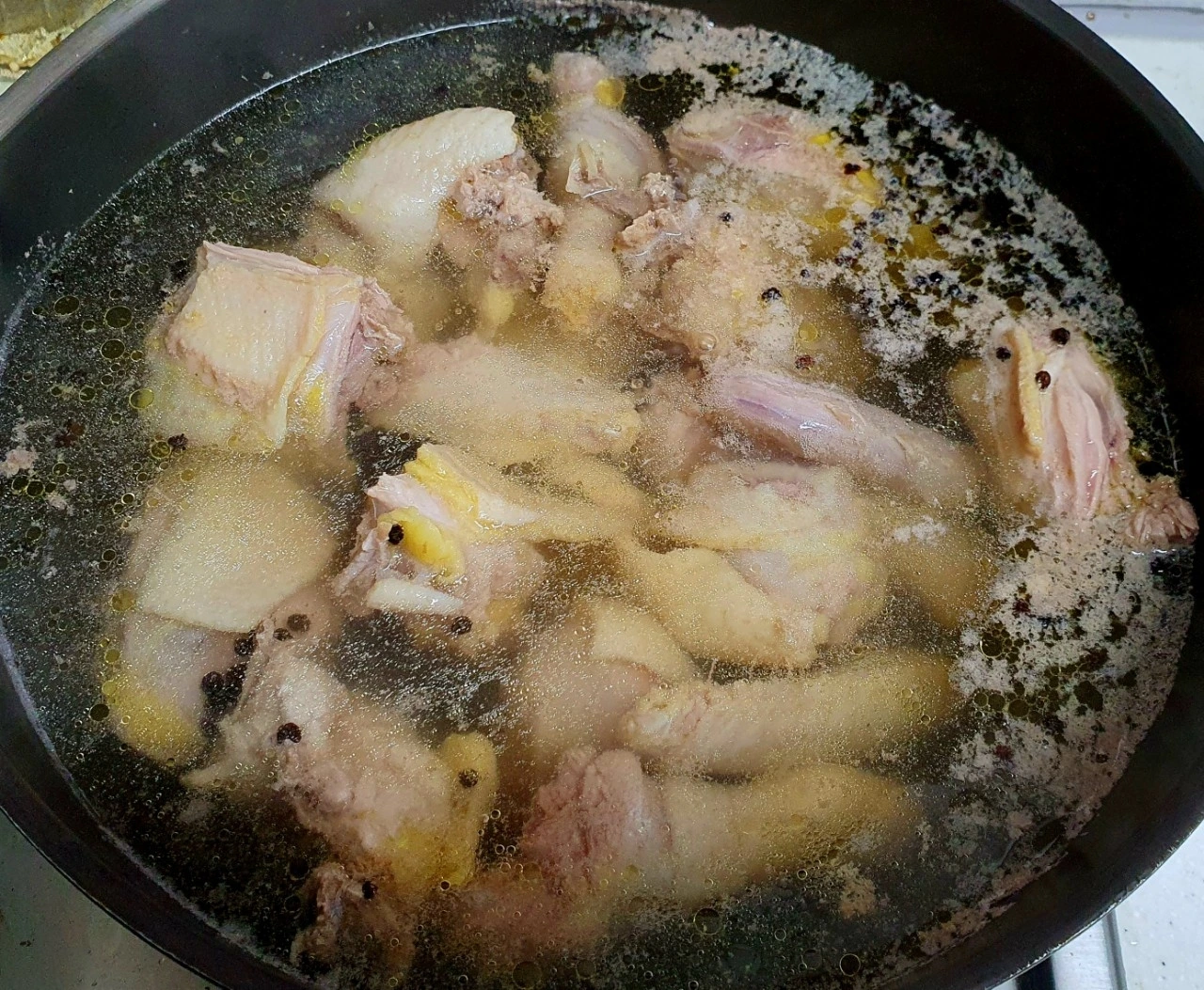 ■ 재료 : 노계닭 1마리. 감자 3개. 양파 1개. 당근⅓개. 대파 1개. 청양고추 3개, 당면한 줌. 다시마육수 3컵. 참기름. 통깨
