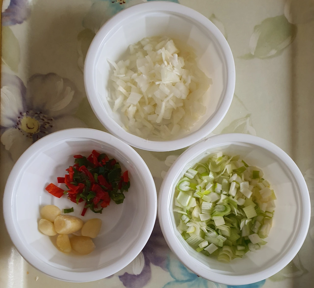 • 마늘은 다지고, 양파. 대파. 청양고추는 잘게 썰어 준비한다.