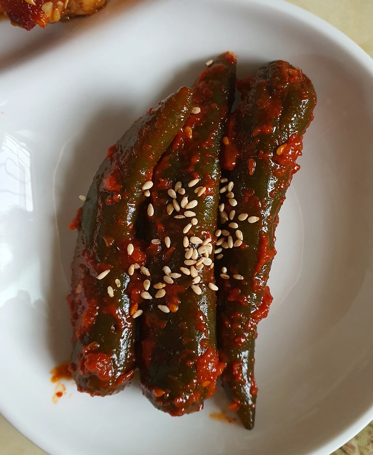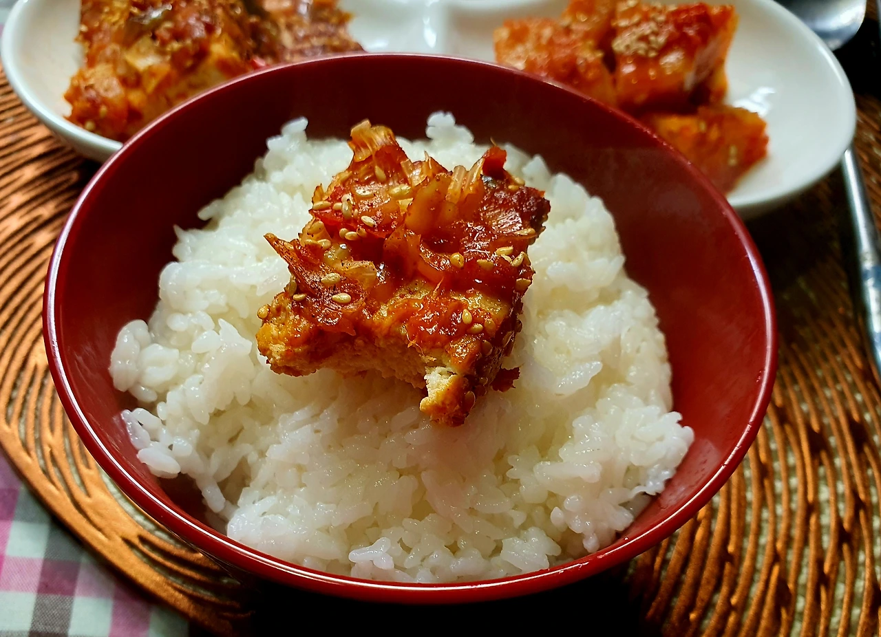 ■ 양념 : 간장 2큰술. 참치액 1큰술. 굴소스 1큰술. 맛술 1큰술. 고춧가루 1큰술. 생강청 ⅓큰술(생략 가능). 물엿 1큰술. 육수 150ml. 참기름. 후추. 통깨