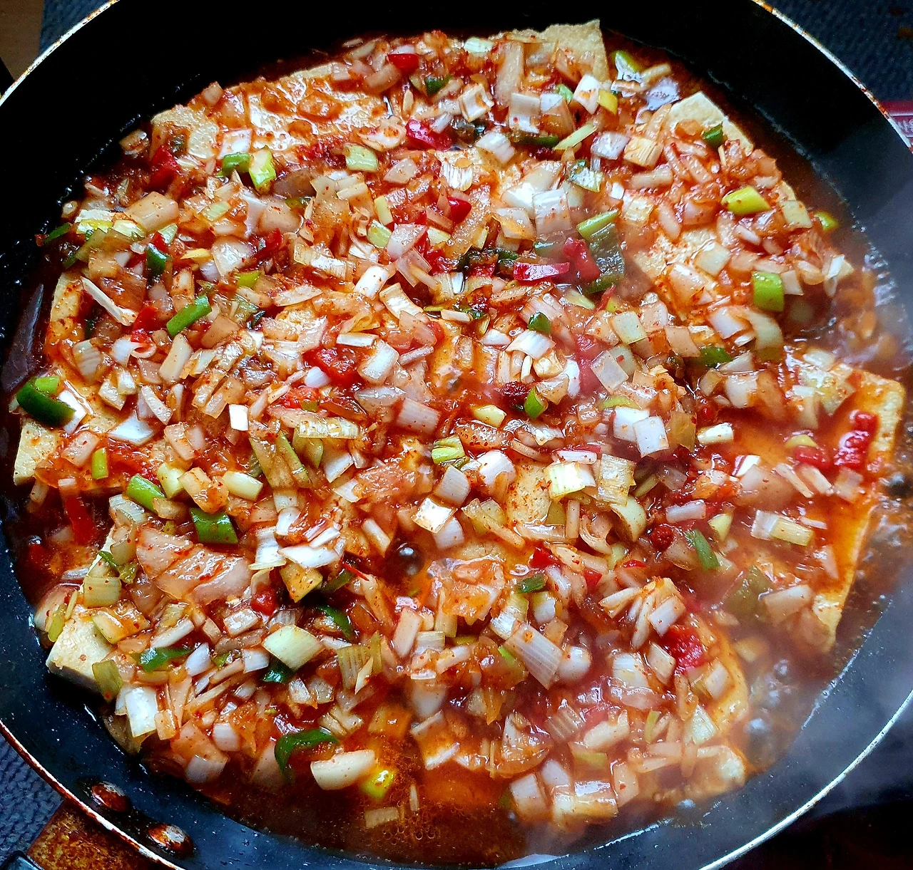 ■ 재료 : 두부 1모. 마늘 ½큰술. 양파 ⅓개. 대파 ½대. 청양고추 1개