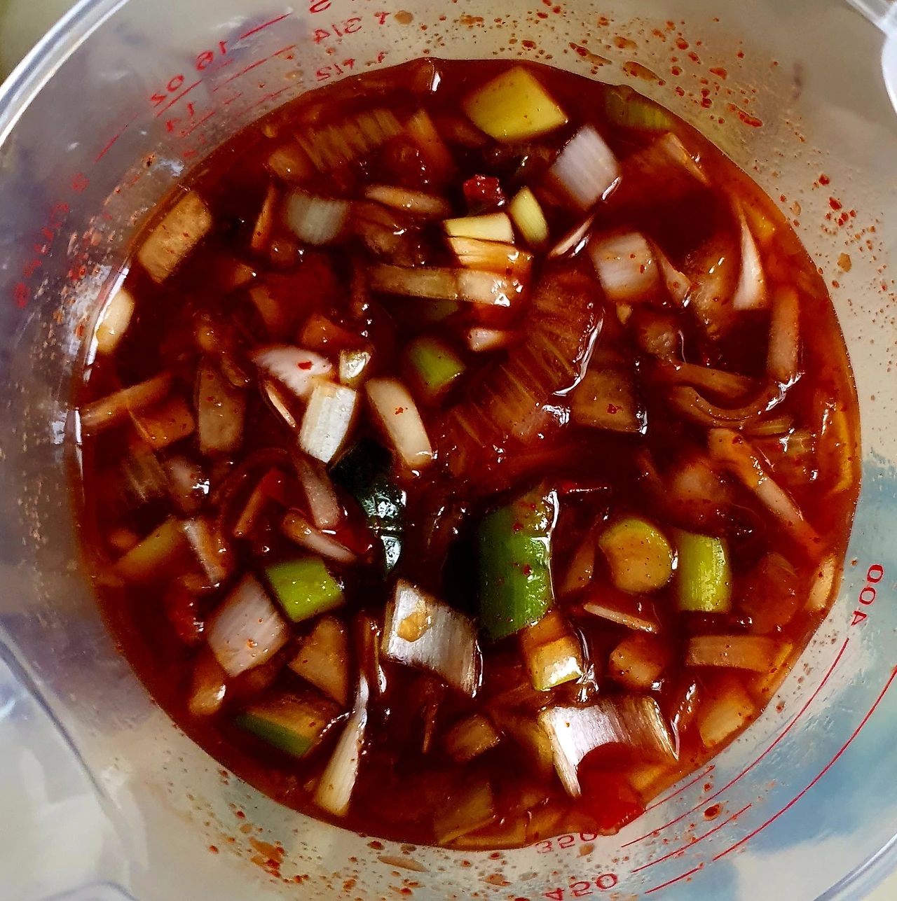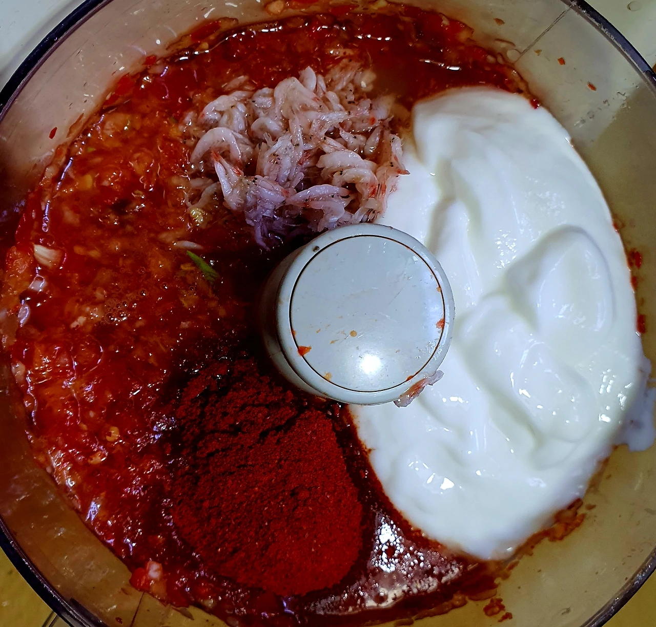 ■ 양념재료 : 고춧가루 1½컵. 까나리액젓 5큰술. 참치액 3큰술. 새우젓 3큰술. 마늘 20톨. 대파 2대. 양파 1개. 원당 1큰술. 배음료 1컵. 물고추 1컵(홍지고추). 그릭요구르트 180ml. 생강가루 ½작은술
